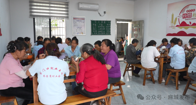 中午下班后,工人们成群结队走向幸福食堂,便宜可口的饭菜,吃得舒心又放心。麻城市新创科技有限公司员工陈春芳笑着说:“自己在家煮麻烦,在这里吃又满意又方便。平时哪怕不上班,也会带着孩子来这里吃。”