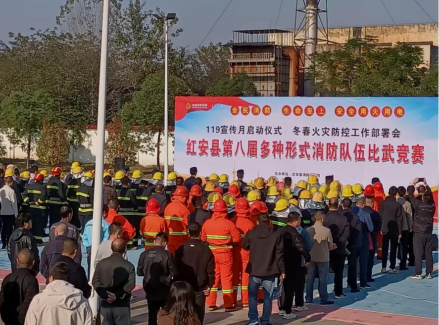 当天上午9时,红安县冬春火灾防控工作部署会暨“119”消防宣传月启动仪式、第八届多种形式消防队伍比武竞赛在红安高新区专职消防队隆重举行。杏花乡党委、政府高度重视,分管领导带队准时参会,认真聆听了全县冬春季节火灾防控工作的全面部署、“119”消防宣传月的详细安排以及县领导的重要指示。在观摩消防救援队伍执勤岗位练兵成果汇报表演及比武竞赛的过程中,杏花乡参会人员仔细看、认真学,用心记录下先进的理念、规范的流程和有效的技战术方法,为后续工作开展储备了丰富的“知识食粮”。