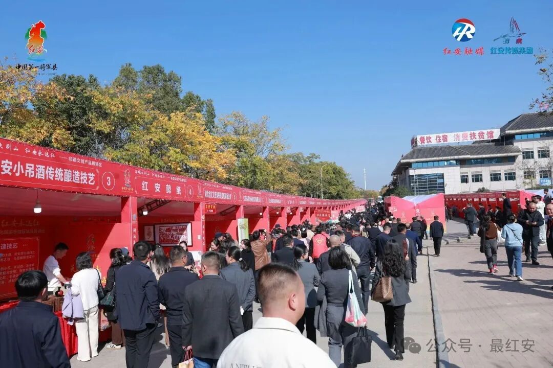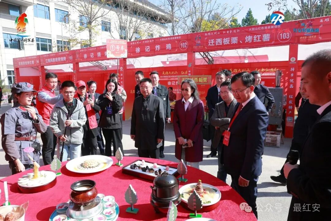 开幕式前,大家观看了湖北大鼓《一代战将王近山》、方言小品《憨女婿拜寿》、情景表演唱《十把扇子》,以及红安融媒(传媒集团)制作的宣传片《寻脉红安》《英雄大别山 红安永远红--红安精品旅游线路》;演出结束后,嘉宾们来到美食展销会、地标优品展销会及大别山非遗文创展销会现场,红安苕制品、手工油面等特色美食香气扑鼻,红安绣活、红安大布、剪纸等非遗文创匠心独具,大家在品鉴与观赏中,亲身感受红安的物产丰饶与文化魅力。