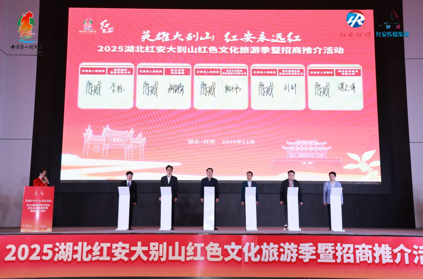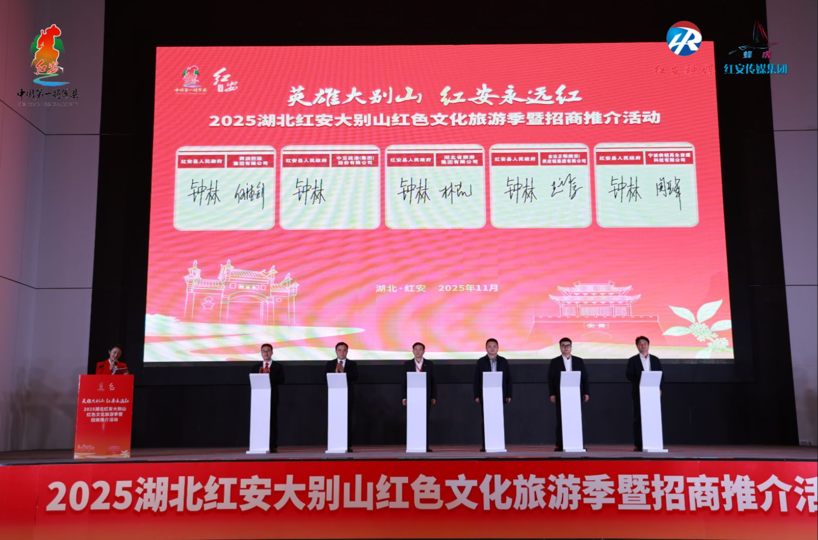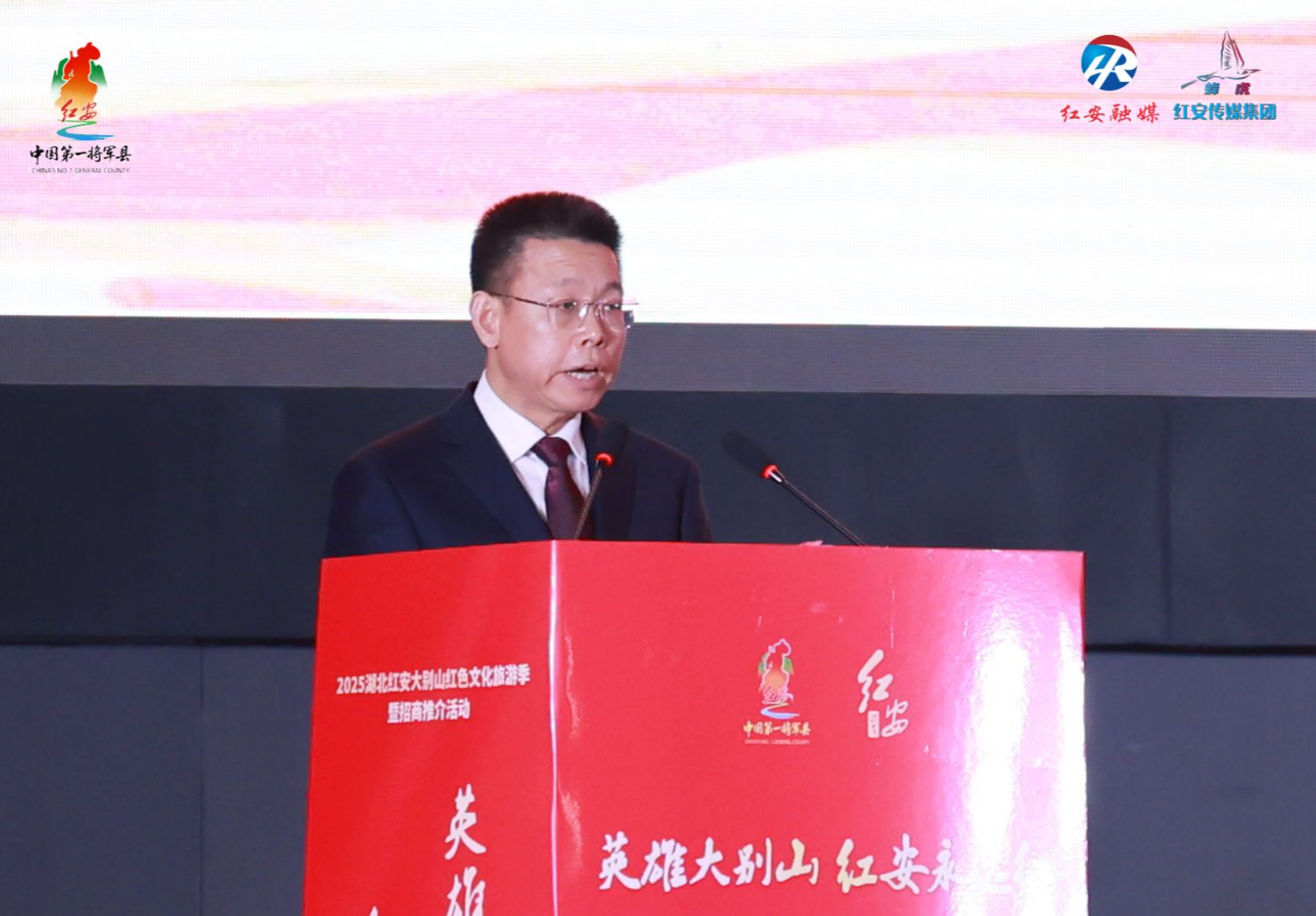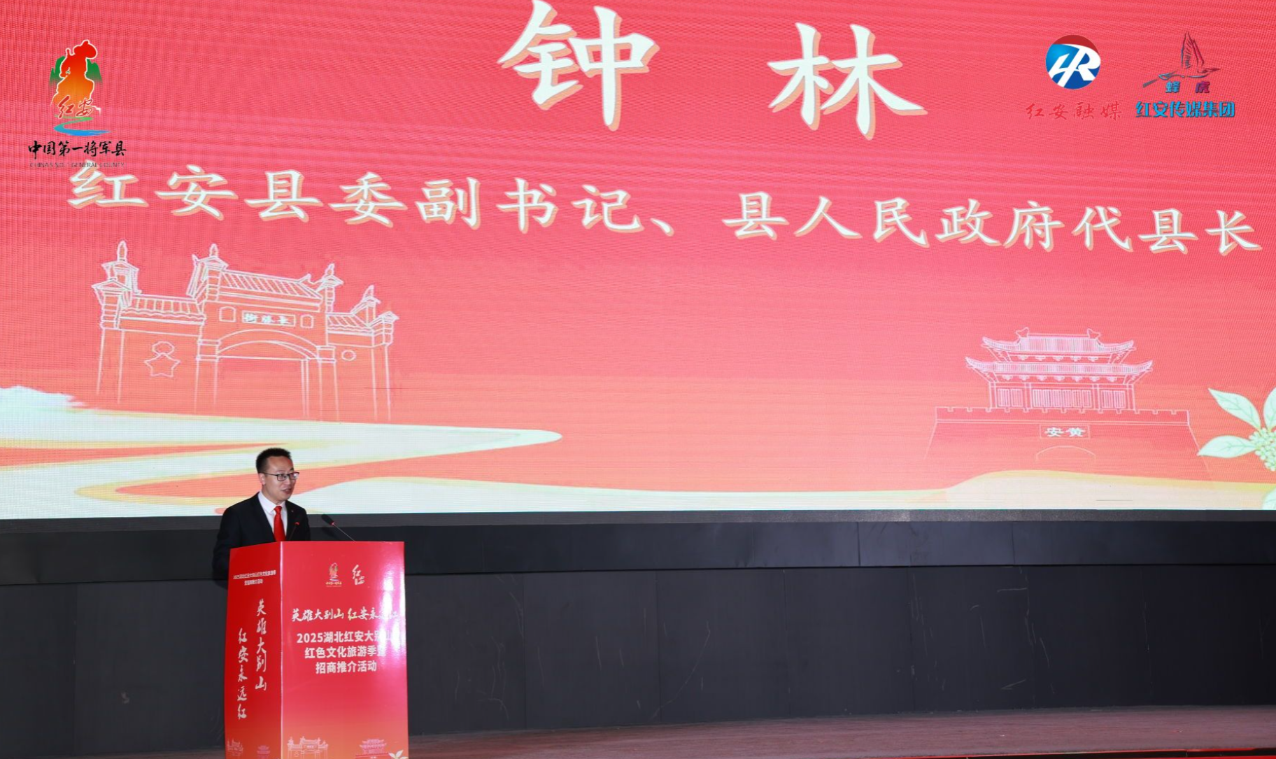 红安网消息 11月13日下午,“英雄大别山 红安永远红”2025湖北红安大别山红色文化旅游季暨招商推介活动在古鼎国际大酒店举行。活动聚焦产业合作、项目落地,通过政策推介、经验交流、集中签约等环节,搭建政企对接桥梁,助力红安高质量发展。黄冈市政府副市长王健,红安县委副书记、代县长钟林,及张治祥、余宏波、陈威、韩琼等县领导出席,230余名商会代表、企业负责人、招商大使及行业嘉宾齐聚现场。