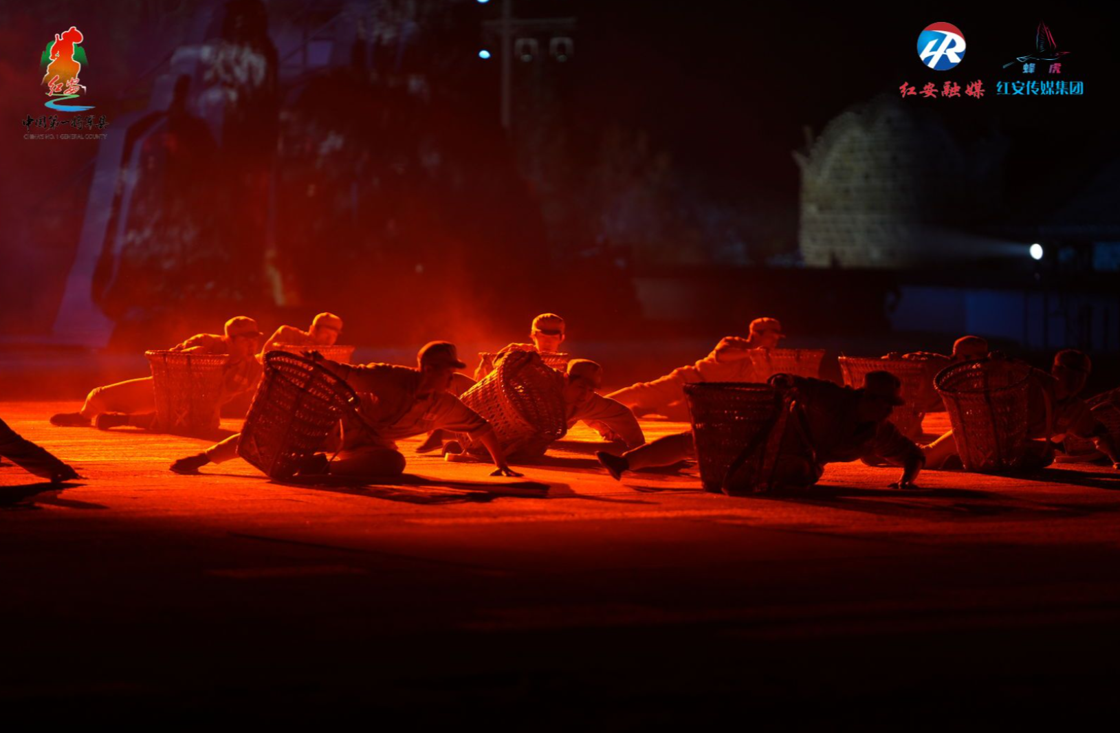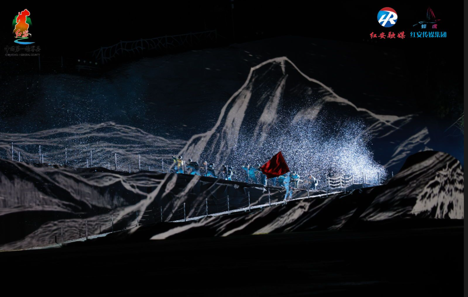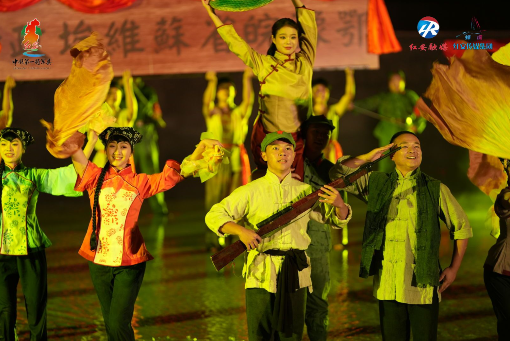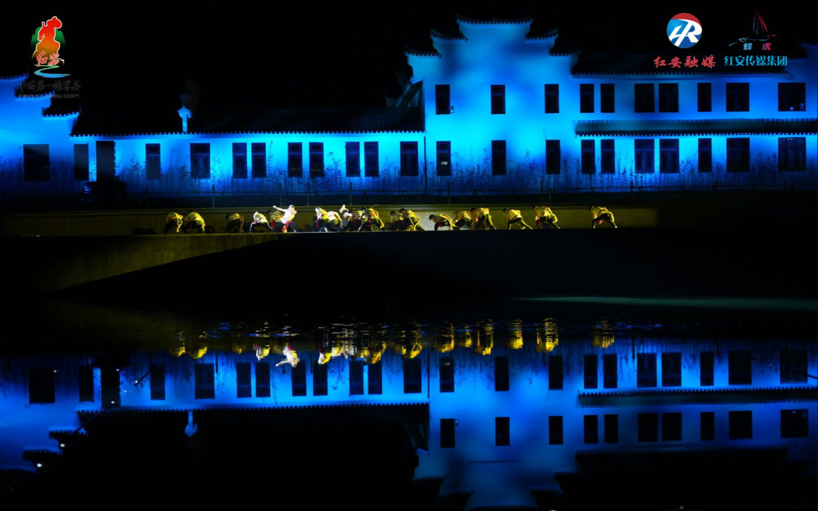红安网消息 11月13日晚,大别山首届红色火把节暨《红安・红安》行浸式山水实景演艺阶段性成果汇报演出在黄安古城·红安影视幻城举行。