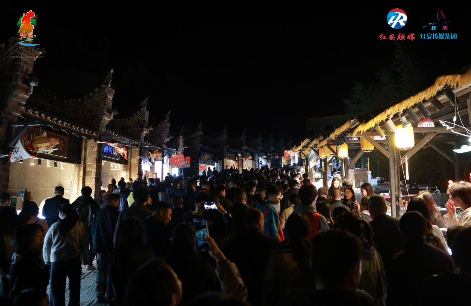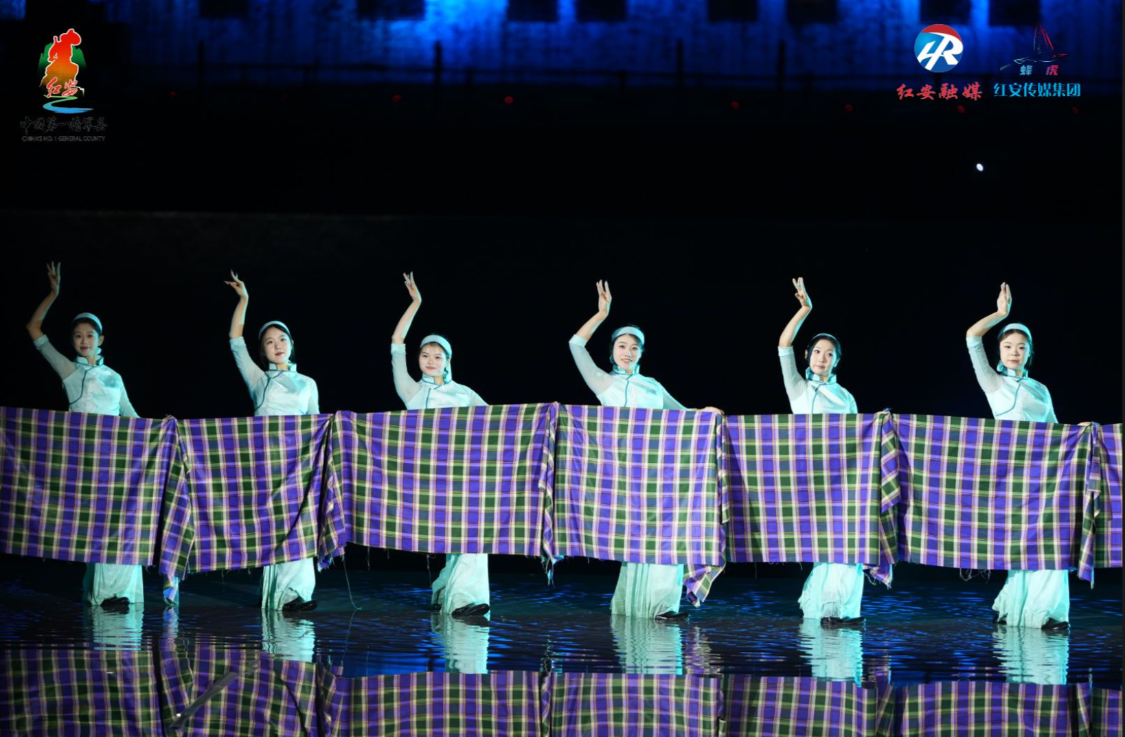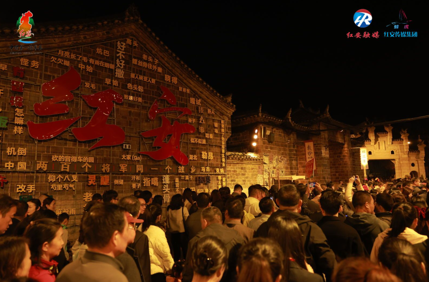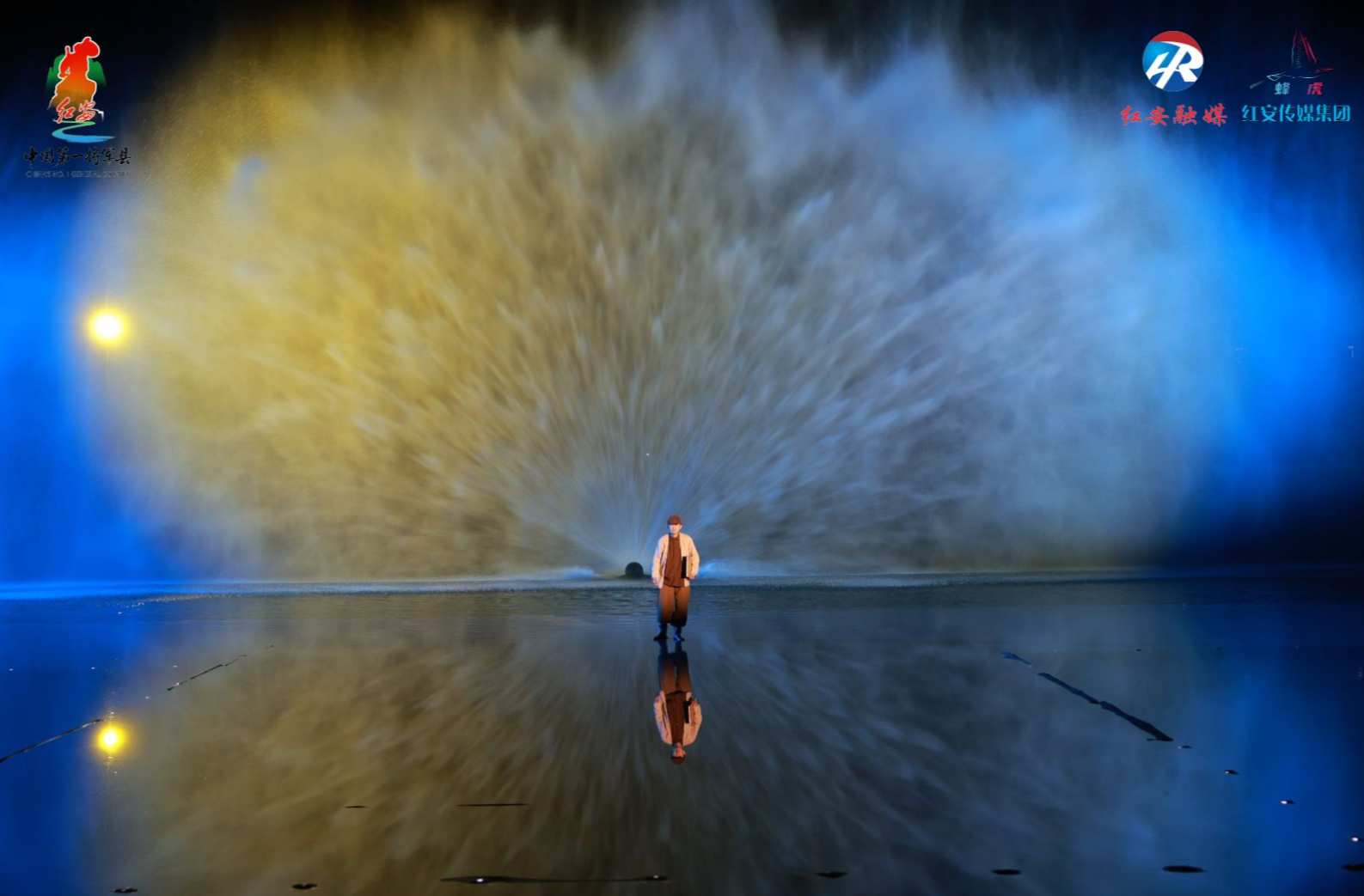 红安网消息 11月13日晚,大别山首届红色火把节暨《红安・红安》行浸式山水实景演艺阶段性成果汇报演出在黄安古城·红安影视幻城举行。