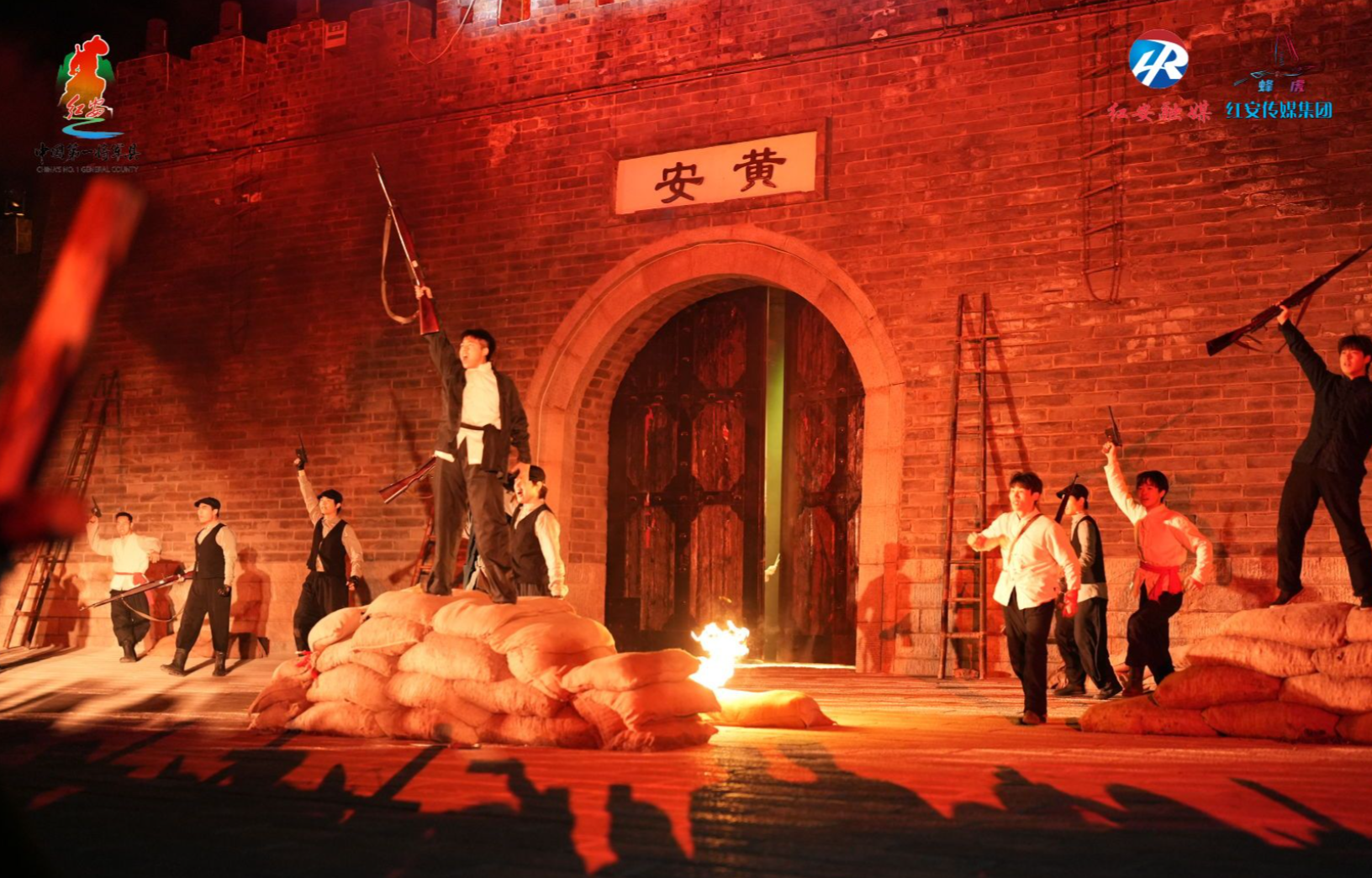 《红安·红安》大型行浸式山水实景演艺,启用王潮歌《只有河南》原班人马,国内一线演艺编创人员,投入专业演员超200名,以《红安·红安》大型行浸式山水实景演艺为核心引擎,通过行进式演艺来实现景区山、水、林、城的四大主题区与四幕行进式演艺的深度耦合,构建时空交错和深度沉浸体验的红色记忆场域。游客在游客中心换装后将在声光电科技与专业演员的引导下,以第一视角参与黄麻烽火岁月的历史场景,依托影视城实景地貌,打造可触可感可歌可泣的革命历史空间,以实现一步一景一故事、亲身体验,穿越时空的沉浸式叙事体验,推动红色旅游从观光向沉浸式体验转型,探索红色文化旅游新场景、新路径和新高度。