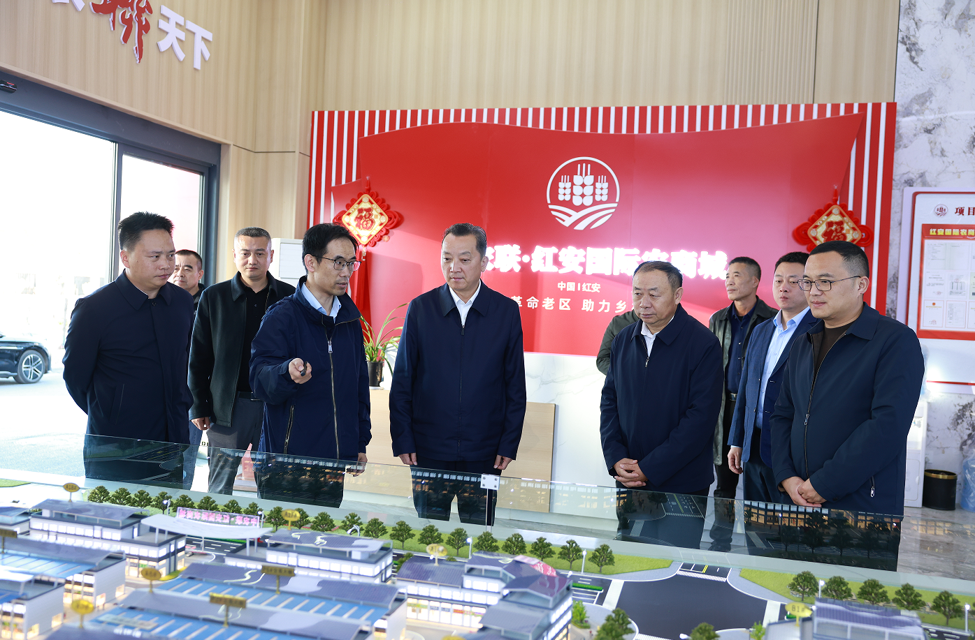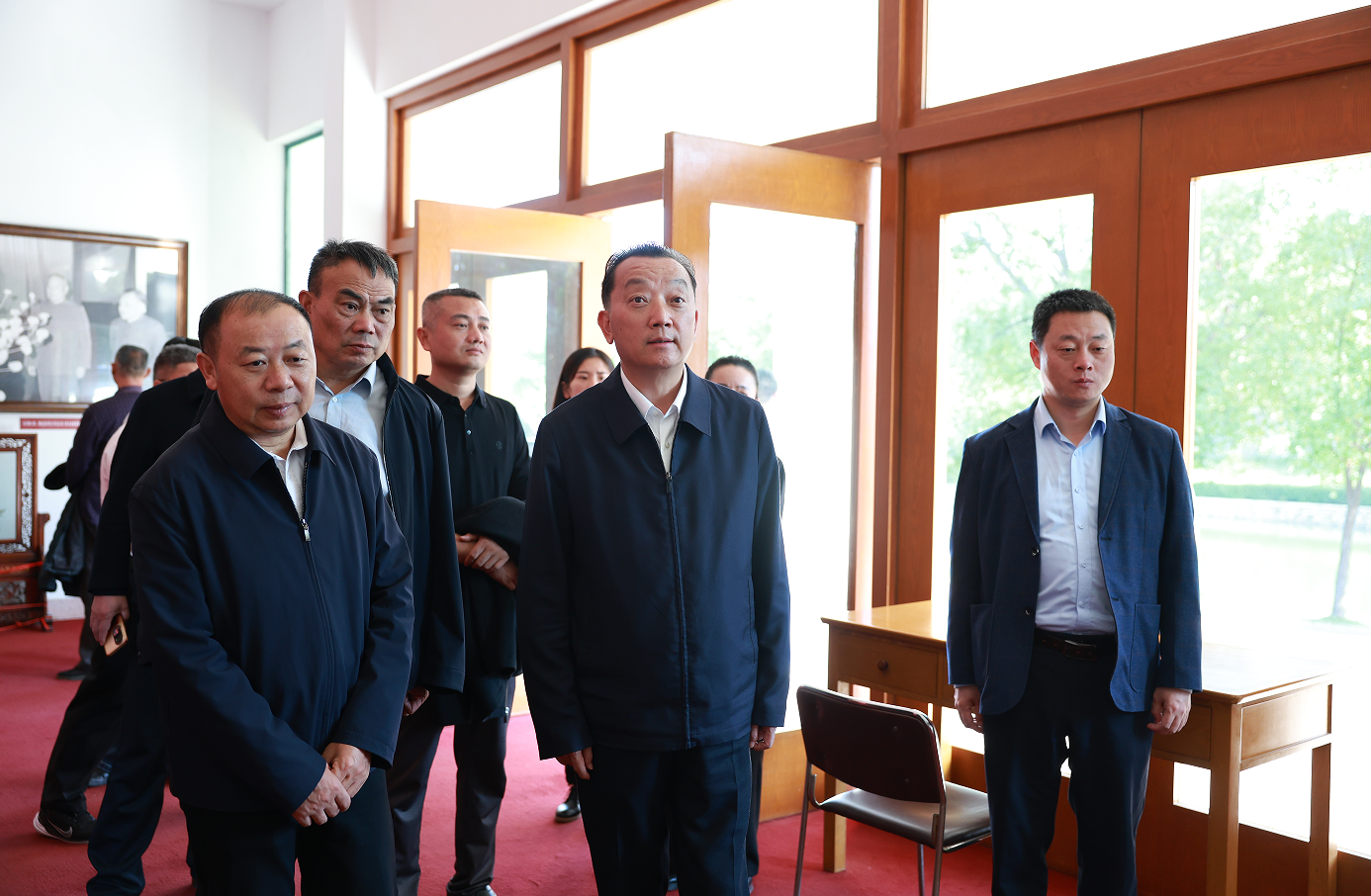 李兴兵一行首站来到李先念故居纪念园,瞻仰革命先辈事迹,感悟红色精神。随后,前往中农联红安国际农商城、鄂东农产品智慧物流园,实地了解项目运营、市场规划及农产品流通体系建设情况,双方围绕农产品种植、精深加工与产业链延伸等议题进行了深入交流。