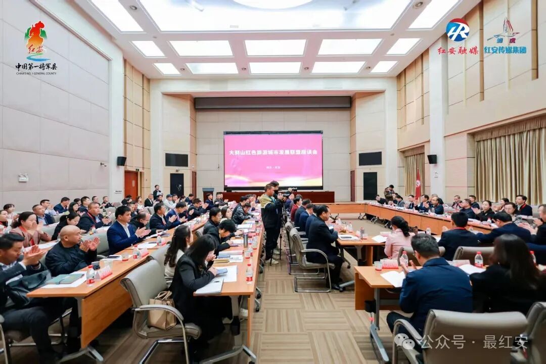 安徽省金寨县委书记张涧,六安市裕安区委书记董永来,河南省新县县委书记、县长李晓亮,黄陂区政协主席熊定萍等大别山红色旅游城市发展联盟成员单位县(市、区)委书记、分管领导作交流发言,红安县委书记胡广致辞并作交流发言,红安县领导张凤珍、熊孟元、刘晓军、李国彬、管鹏、阮元兵、张喜坤,以及大别山红色旅游城市发展联盟成员单位文化和旅游局负责人、旅游协会会长、重点红色场馆负责人,全国知名旅游企业、研学机构代表,红安各乡镇(场、处)党委书记,县直相关单位主要负责人,文旅产业发展联盟理事会成员,中央、省市新闻媒体代表参加座谈会。