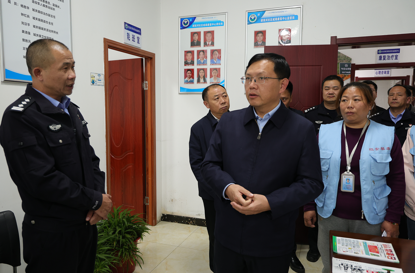 11月15日下午,红安县委书记胡广到城关镇胡家河社区戒毒康复中心、国育实验学校禁毒教育基地,调研禁毒工作。县领导阮璘、董炜以及相关单位负责人参加调研。