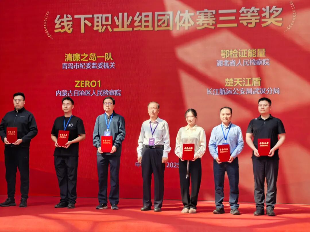 在线下团队赛中,由宜昌市检察院颜昊、孝感市检察院杨永旺、荆州市检察院项博3名队员组成的“鄂检证能量”团队,斩获职业组团队赛三等奖。