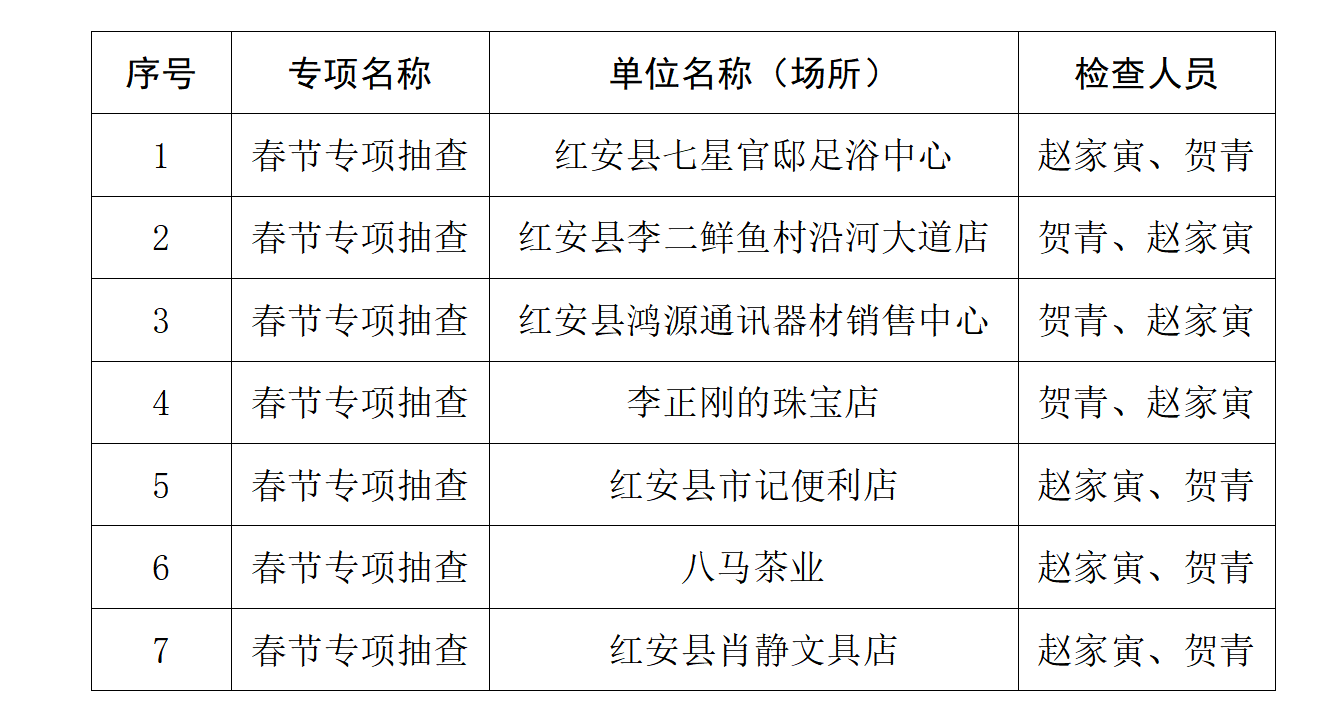 红安县消防救援大队2025年1月专项抽查公示