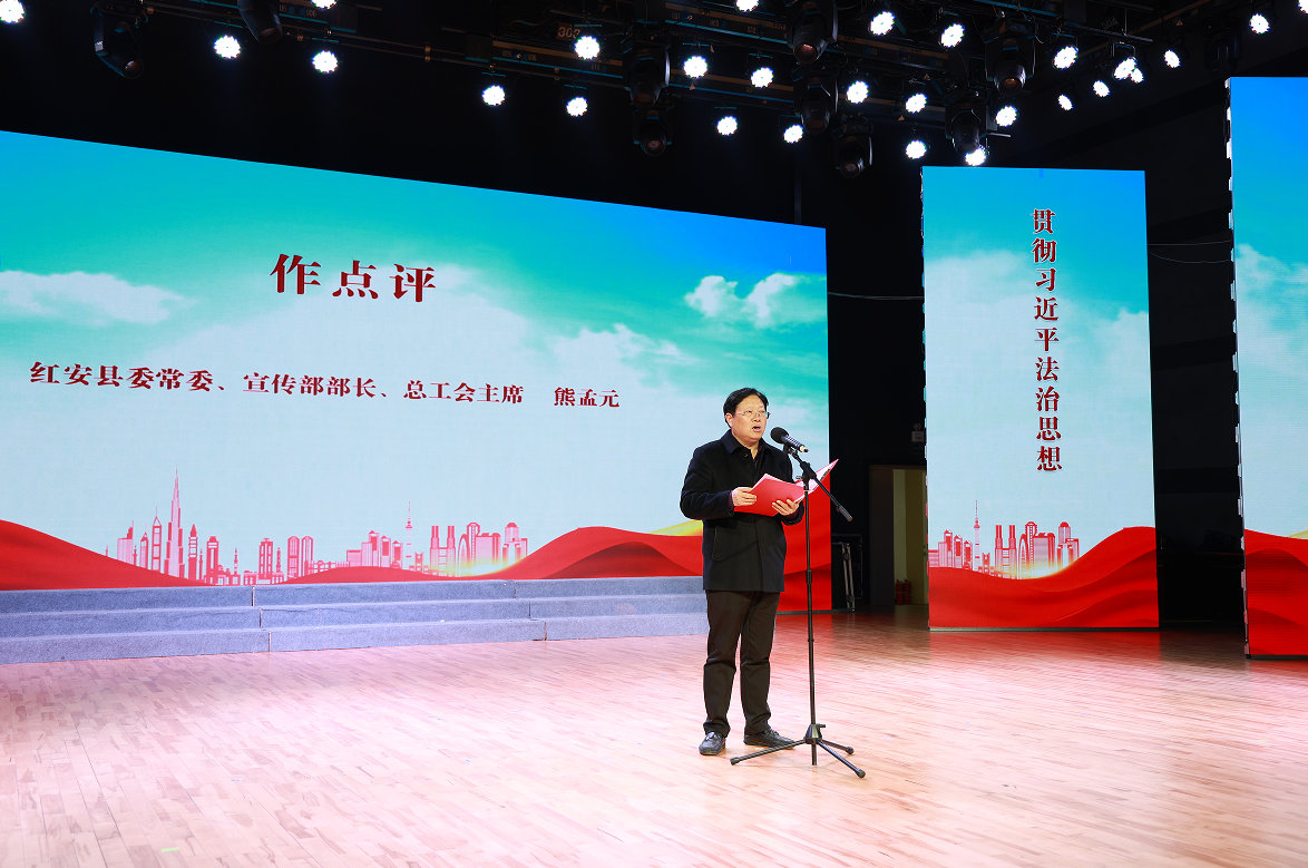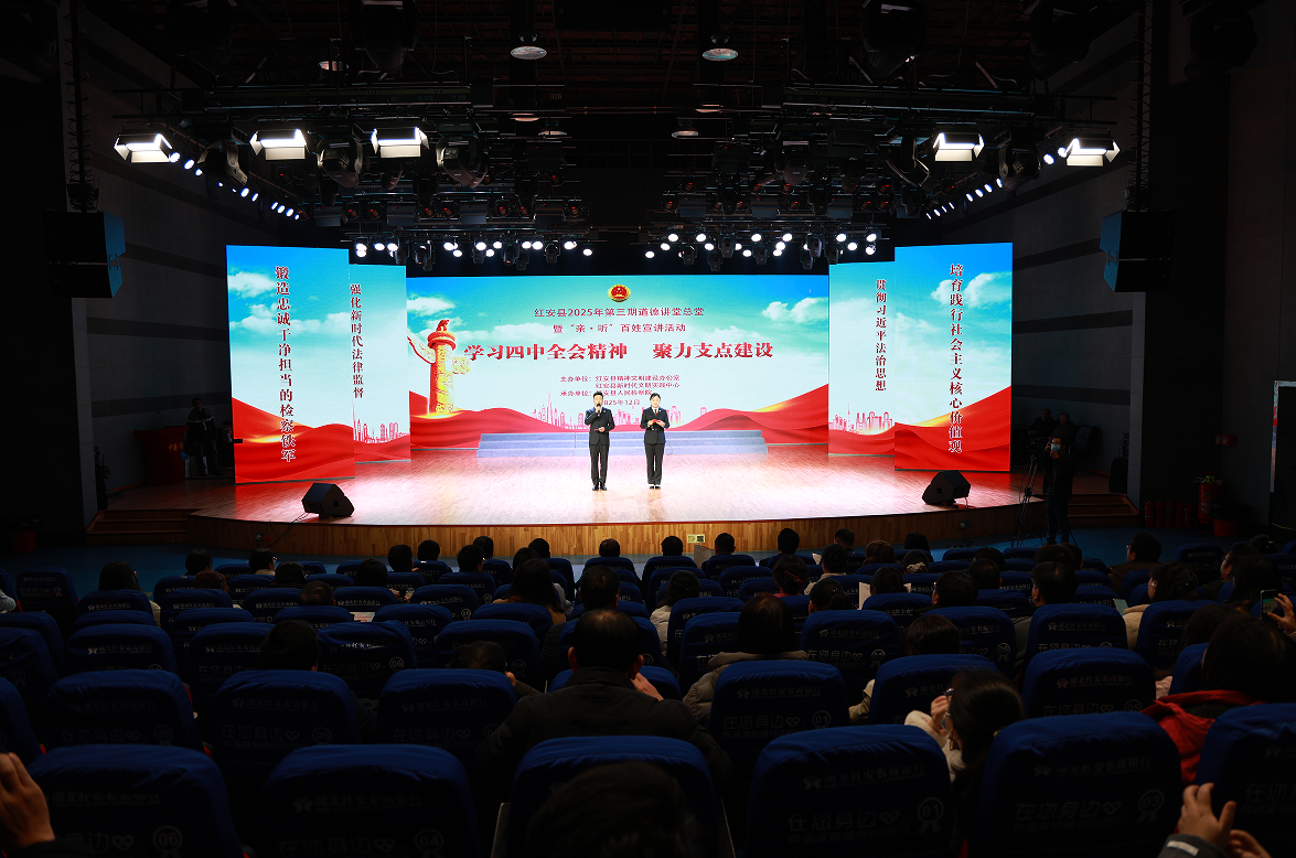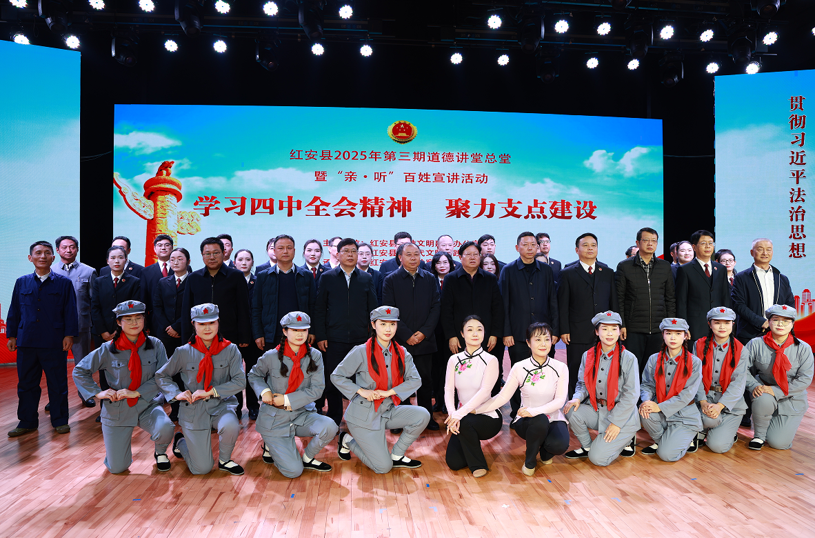 红安网消息 12月10日下午,由红安县精神文明建设办公室、红安县新时代文明实践中心主办,红安县人民检察院承办的红安县2025年第三期道德讲堂总堂暨“亲·听”百姓宣讲活动,在红安融媒(传媒集团)演播大厅举行,红安县委常委、宣传部部长、总工会主席熊孟元,红安县委常委、县委办主任阮璘以及董炜、卢绘、郑勇等县领导参加活动。