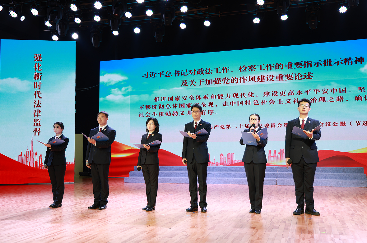 本期《道德讲堂》以“学习四中全会精神 聚力支点建设”为主题,按照唱歌曲、作宣讲、诵经典、讲故事、学模范、谈感悟、看小剧、展才艺等8个环节依次展开,展现了红安检察队伍捍卫公平正义、坚守清正廉洁、心系人民利益、践行高尚道德的优秀品格与精神风貌。