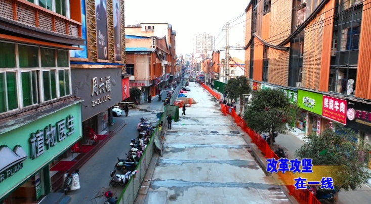 湖北省红文旅游投资集团有限公司工程管理部副部长彭凯说:“民主街改造项目整体外立面更新共计53栋建筑纳入修缮范围,已完成50栋改造及脚手架拆除工作,完成率96%,另外鑫黄安商场和红安商场正在施工;灯光亮化方面,建筑外立面亮化完成95%,菜场街至三机厂管群、接线井、路灯基础安装道路照明工作全部完成,南济街段完成50%;道路改造完成整体工程量65%,预计2026年1月31日前道路全面竣工。”