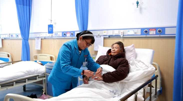 红安县人民医院住院患者汪爹爹说:“子女(工作忙)没时间照顾我,医疗护理员把我们当成亲人一样,需要什么解决什么,各方面做得比较周到,让子女在外工作能够安安心心。”