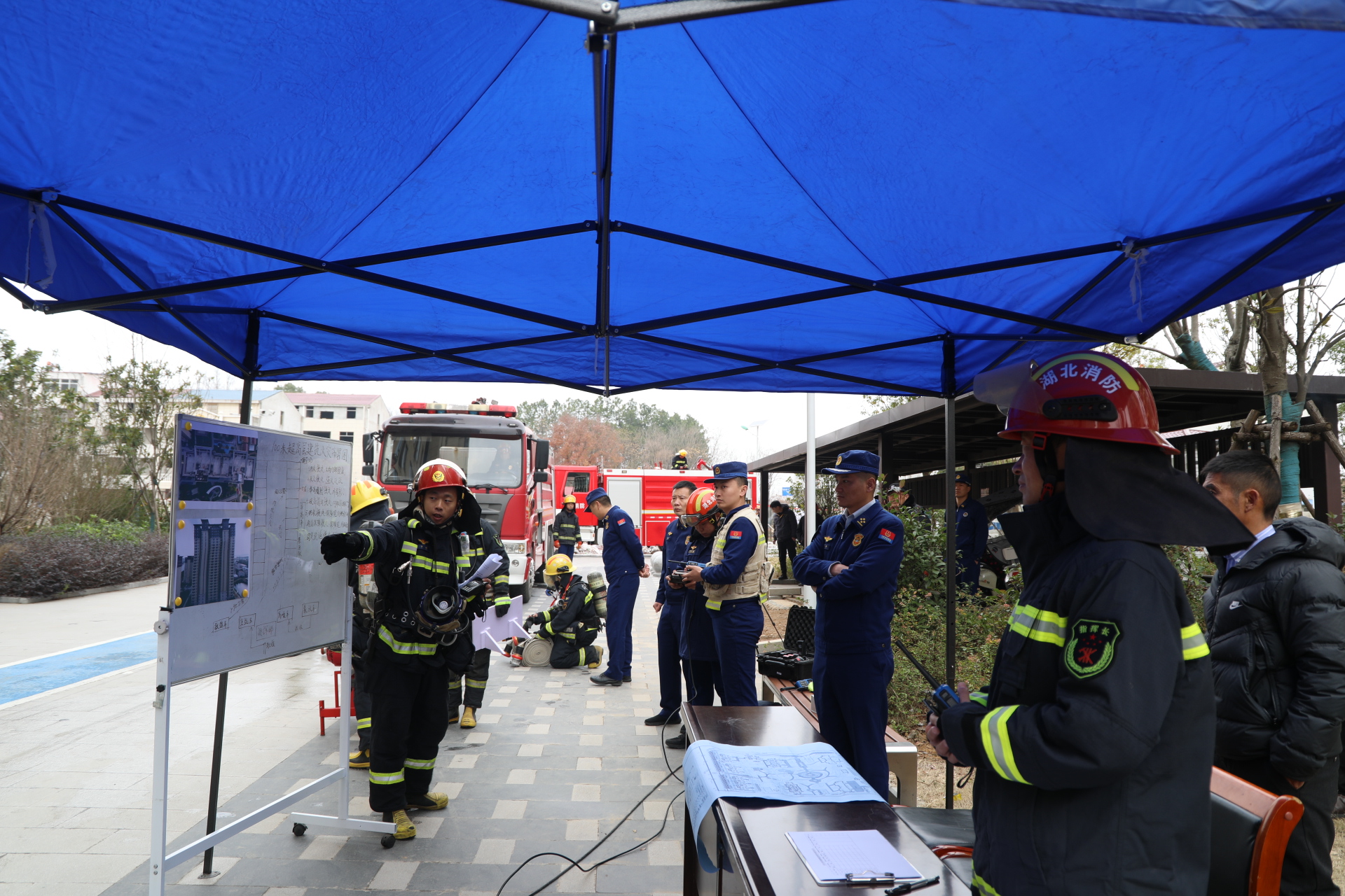 消防站接警后,迅速按照高层建筑火灾扑救编成调派力量赶赴现场。到场后,指挥员立即根据高层建筑火灾特点和安全要点,部署开展灾情评估。各作战单元任务清晰、行动迅速,整个演练过程紧张有序,各环节衔接紧密,技战术运用得当,成功完成了火情侦察、内攻控火、人员搜救、火场排烟、设施应用等多个实战科目。演练结束后,现场指挥员立即组织战评总结,围绕接警调派、指挥决策、战术运用、协同配合、安全管控、装备效能等方面进行深入剖析,逐一指出演练中暴露出的短板与不足,并研讨制定了具体的改进措施。