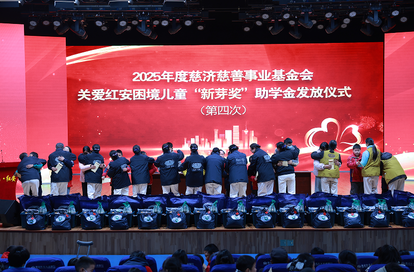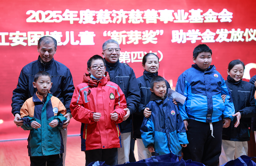 在热烈的掌声中,与会嘉宾为受助学生代表逐一发放助学金及御寒物资。崭新的冬衣、厚实的棉被与沉甸甸的助学金,承载着社会各界的深切关怀,让孩子们的脸上绽放出灿烂的笑容。