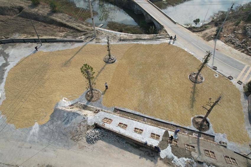 不远处的4000平方米广场,上个月还是杂草丛生、泥泞不堪,如今已完成硬化并采用压花工艺,集晒场、停车场、体育场地于一体,还将配套充电桩和体育器材——农业晾晒与现代服务的融合,绘就了乡村振兴的生动画卷。