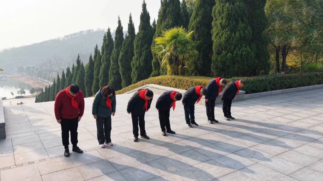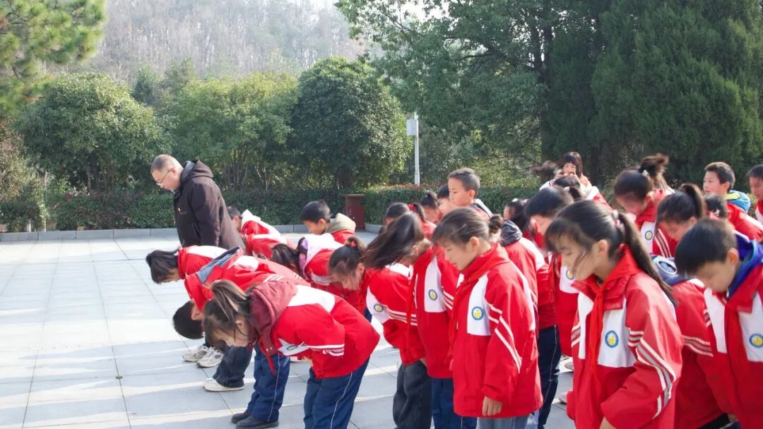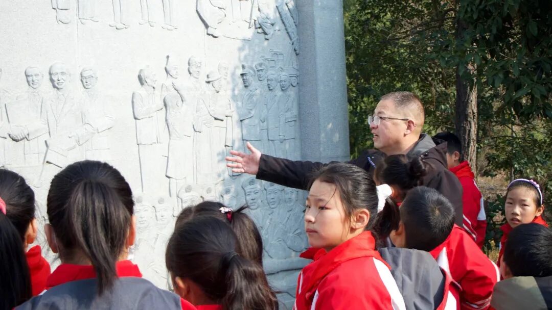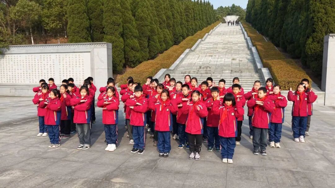 将军城小学校领导与少先队员一起瞻仰刘华清将军墓,并向刘华清将军雕像三鞠躬,表达对刘华清将军的深切缅怀和崇高敬意。