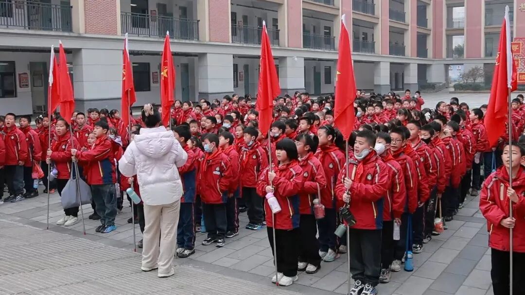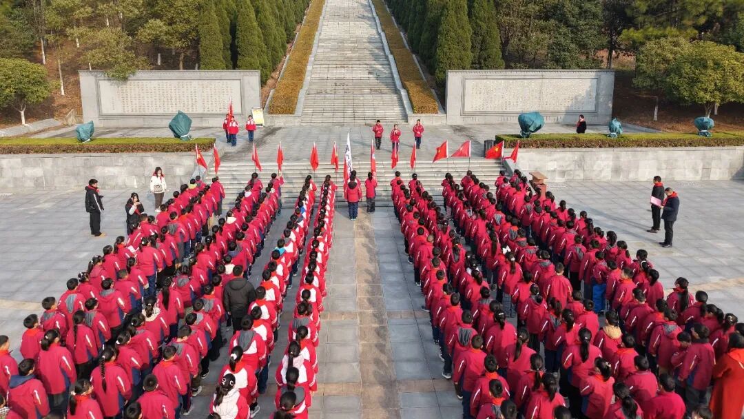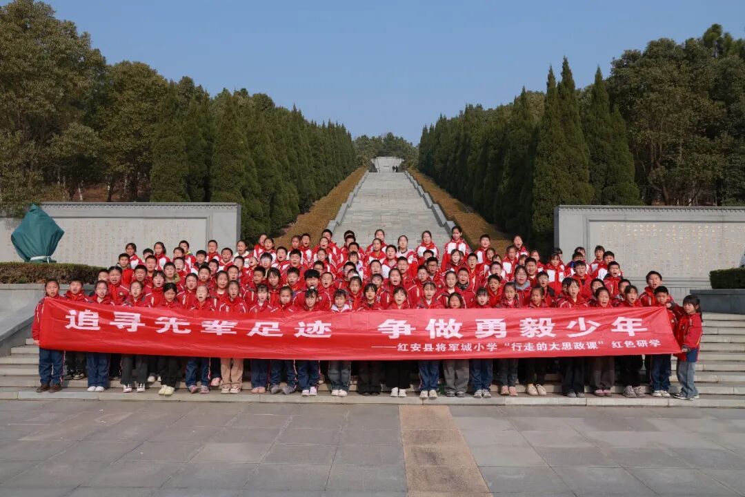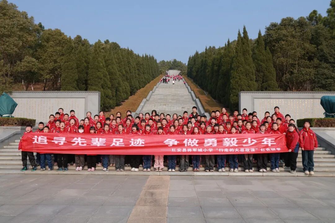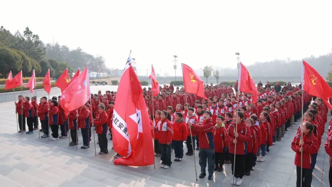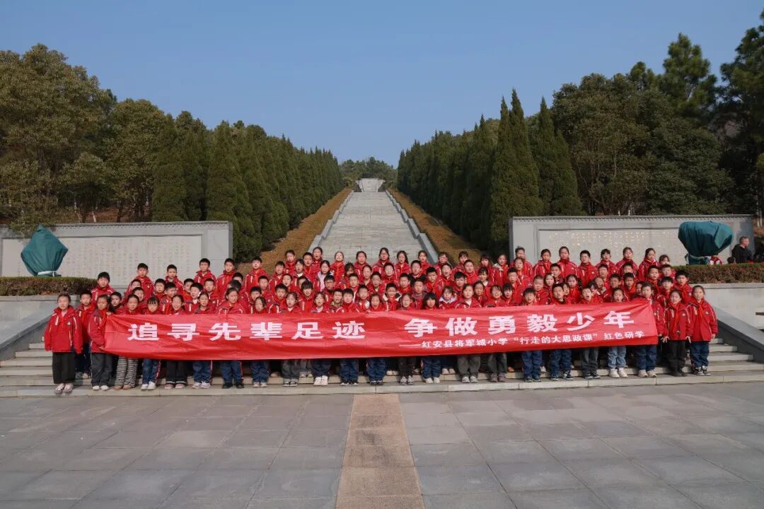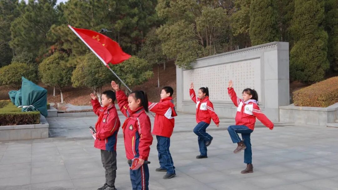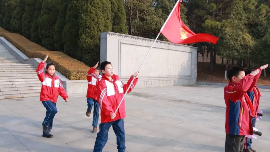 红安网消息 12月19日上午,红安县将军城小学党委会、校委会领导、上新集校区校委会领导及两校区德育和少先队工作者,带领两校区355名少先队员,迎着晨曦,高擎队旗,来到孝感市大悟县刘华清陵园,追寻刘华清将军的光辉足迹,感悟革命先辈的崇高精神风范。