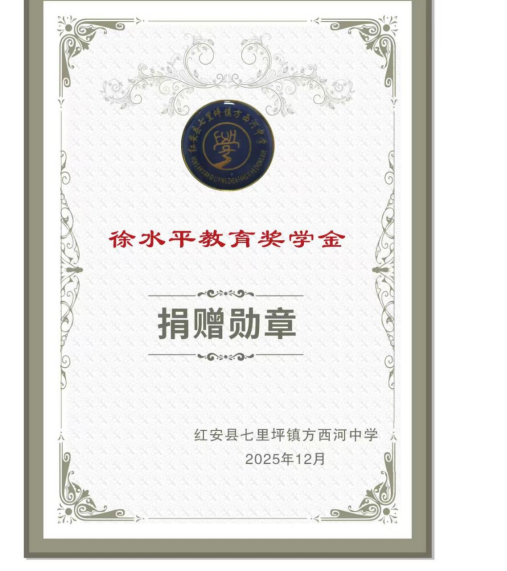 红安网消息 近日,红安县七里坪镇方西河中学在即将迎来建校五十周年庆典前夕,迎来了一件振奋全校师生人心的喜事。毕业多年的知名校友徐晓明专程回到母校,以其父亲名字设立了“徐水平教育奖学金”,旨在激励更多学子努力学习,为家乡发展贡献力量。