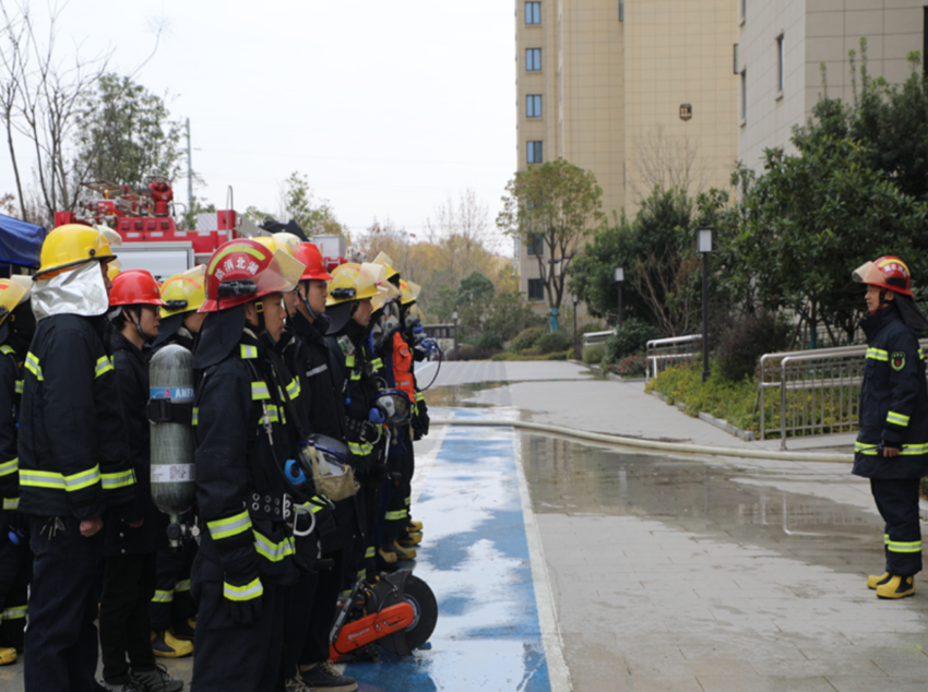消防站接警后,迅速按照高层建筑火灾扑救编成调派力量赶赴现场。到场后,指挥员立即根据高层建筑火灾特点和安全要点,部署开展灾情评估。各作战单元任务清晰、行动迅速 , 整个演练过程紧张有序,各环节衔接紧密,技战术运用得当,成功完成了火情侦察、内攻控火、人员搜救、火场排烟、设施应用等多个实战科目。演练结束后,现场指挥员立即组织战评总结,围绕接警调派、指挥决策、战术运用、协同配合、安全管控、装备效能等方面进行深入剖析,逐一指出演练中暴露出的短板与不足,并研讨制定了具体的改进措施。