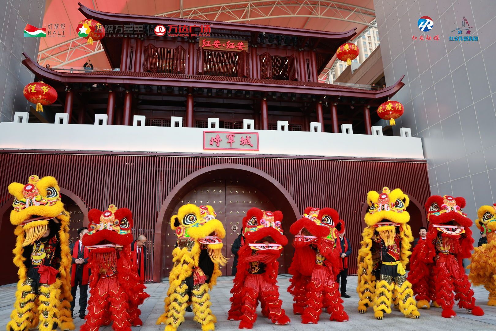 随后,剪彩仪式将现场气氛推向高潮。紧接着,“祥狮点睛”“祥狮吐福”“祥狮采青”等传统民俗活动在将军城城门楼精彩上演,寓意吉祥兴旺;9:45,“开门迎客”环节开启,嘉宾与市民携手步入中庭,观看特色表演,共同感受商业与文化的交融之美。