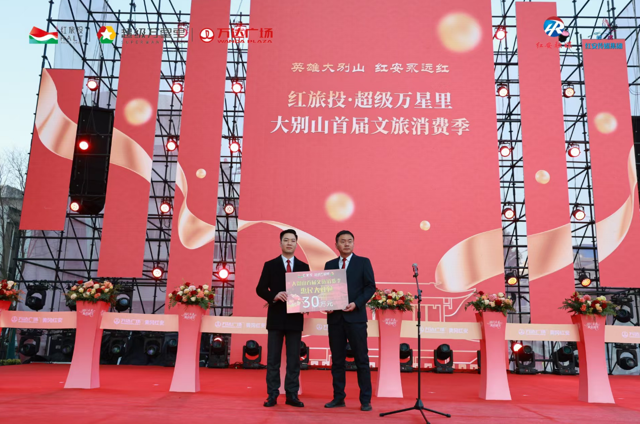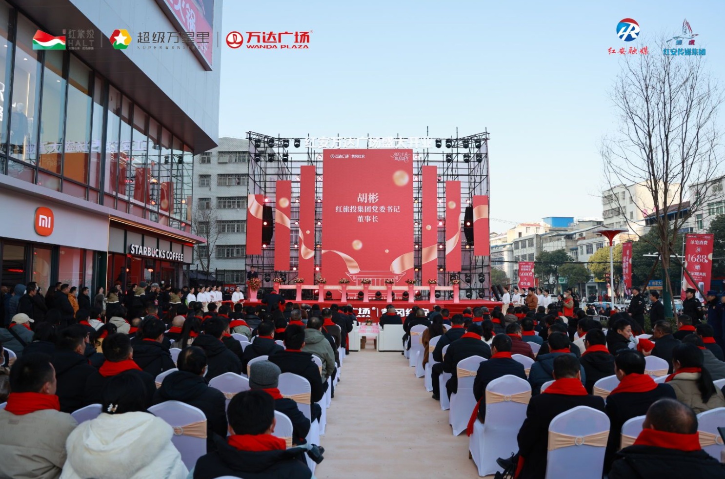 红安网消息 12月26日上午,大别山首届文旅消费季活动在红旅投·超级万星里·万达广场启动,红安县委书记胡广宣布活动启动,并祝贺红旅投·超级万星里·万达广场盛大开幕。珠海万达商管集团南区公司副总裁黄志军,珠海万达商管集团武汉城市公司总经理张元全以及张治祥、张凤珍、熊孟元、李国彬、汤炜光等县领导,相关单位负责人参加启动仪式。
