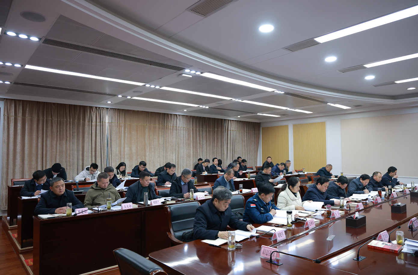 红安网消息 12月29日,红安县委书记胡广主持召开第十五届县委常委会第132次(扩大)会议,传达学习习近平总书记重要讲话、贺信和文章精神,研究部署我县贯彻落实措施;研究红安县委十五届十一次全体会议、侨联换届、党校等有关工作。红安县委副书记、代县长钟林,以及张思路、张凤珍、余宏波、段炎涛、熊孟元、韩琼、阮璘、赵湘伟、高金磊、刘晓军等县领导及县直相关部门负责人参加会议。