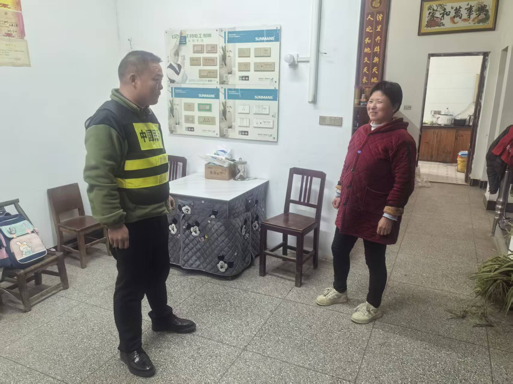 冬春季节是居家安全事故易发期。太平桥镇紧密结合常态化开展“铜锣联防”与大排查、大走访、大帮扶活动,将安全防线延伸至每家每户。一支由镇村干部、网格员、志愿者组成的队伍,正逐户上门,将关怀与安全知识送到百姓家中。他们特别关注特困分散供养人员、孤寡老人、留守儿童、残疾人及仍使用炭火取暖的群众等五类重点对象,耐心细致地排查电线是否老化、取暖设备是否安全、燃气灶具是否合规、通风是否良好等隐患。走访中,工作人员用通俗易懂的语言,重点讲解冬季防火、预防一氧化碳中毒、初期火灾扑救及应急逃生等实用知识,叮嘱大家做到“人走电断、火熄、气关”,提升特殊群体的安全意识和自防自救能力,让安全守护更有温度。