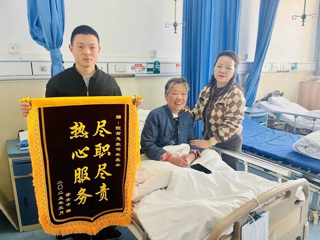 病房里,康复后的徐奶奶及从外地赶回的家属为他送上一面锦旗,他摘下沾满汗渍的工作帽,颤抖着接过这面有声的荣誉,“我觉得这真的不算什么,当时就想着和死神赛跑···”,这位曾在陆军某部服役2年的兵哥哥露出腼腆笑容。