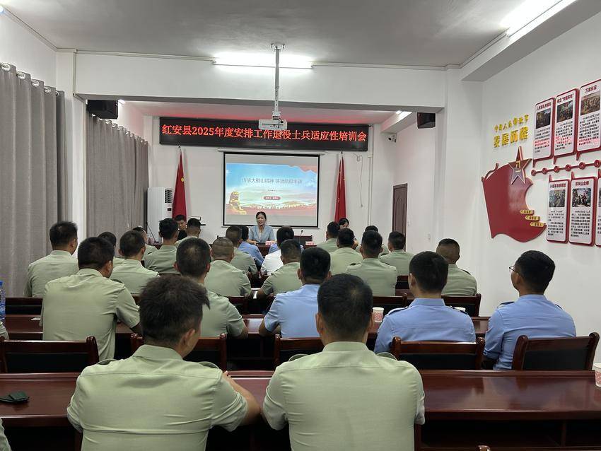 红安网消息 7月22日,红安县退役军人事务局组织开展了2025年度安排工作退役士兵适应性培训。黄冈市老兵宣讲团成员聂荣华及30余名退役士兵参加培训。