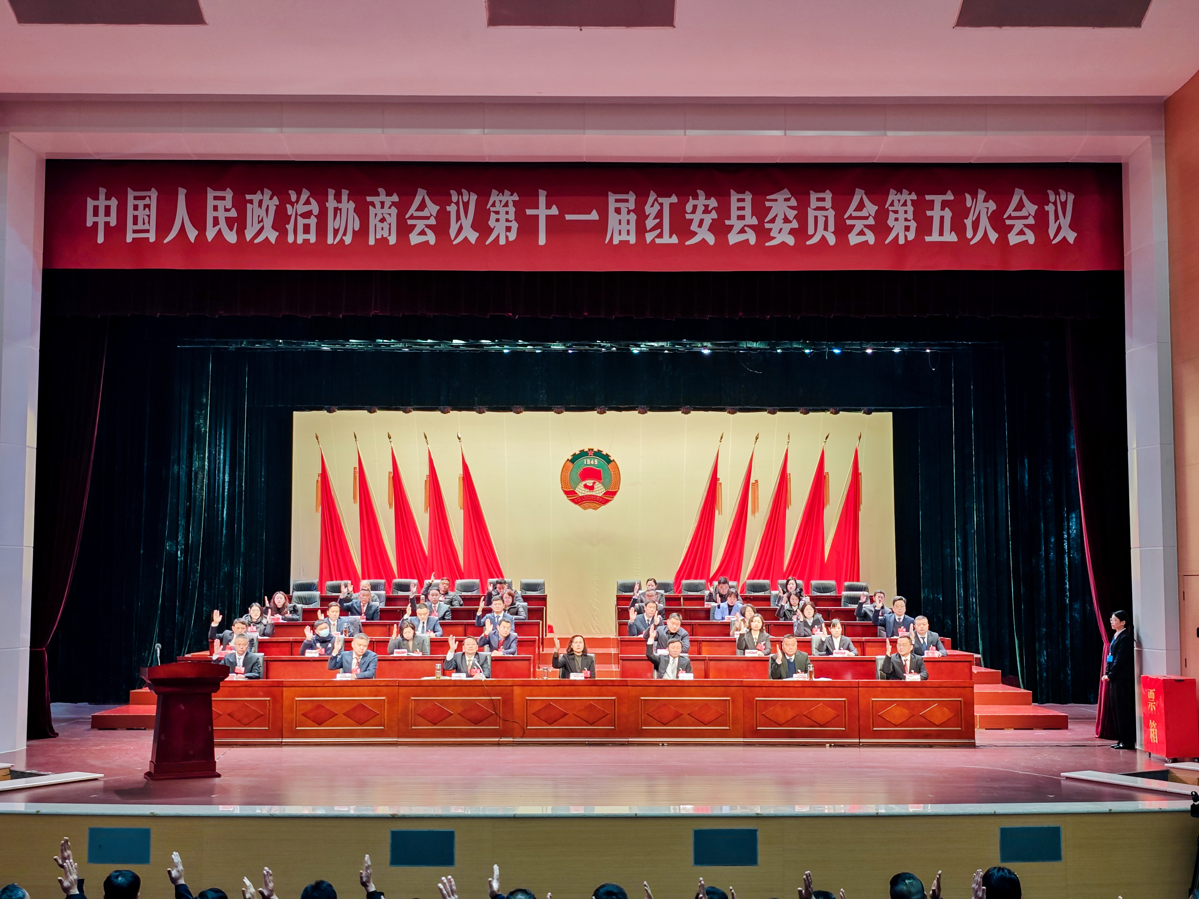 大会以举手表决的方式,依次通过《政协第十一届红安县委员会第五次会议关于常务委员会工作报告的决议》《政协第十一届红安县委员会第五次会议关于十一届四次会议以来提案工作情况报告的决议》《政协第十一届红安县委员会提案委员会关于十一届五次会议提案审查情况的报告》《政协第十一届红安县委员会第五次会议政治决议》;通报表扬2025年度优秀政协委员、年度好提案、提案先进承办单位、优秀社情民意信息和反映社情民意信息工作先进个人。