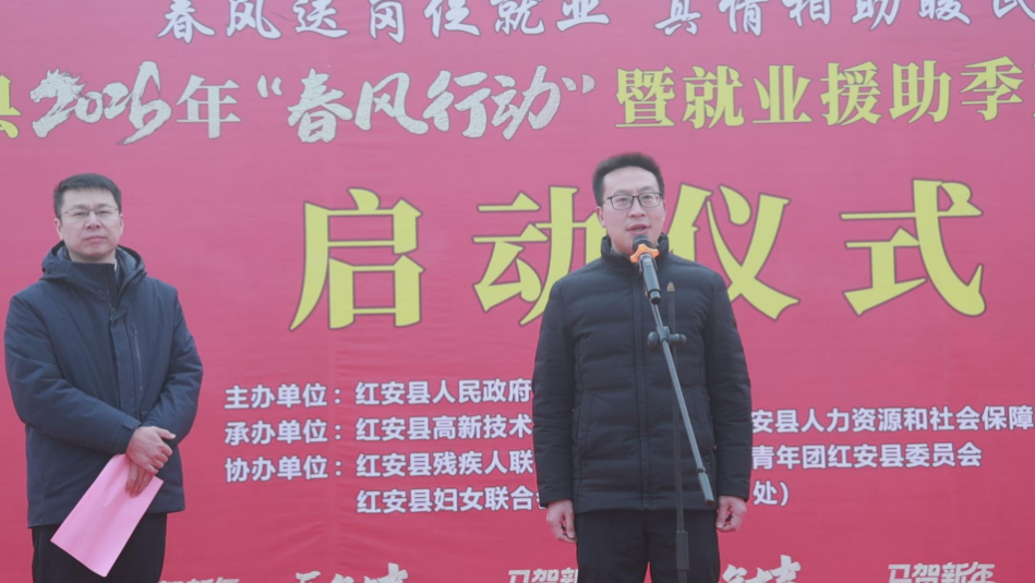 春风送岗促就业,真情相助暖民心。1月28日上午,红安县2026年“春风行动”暨就业援助季系列招聘活动在高新区启动。红安县委副书记、县长钟林宣布活动启动,红安县政府副县长周博主持活动。