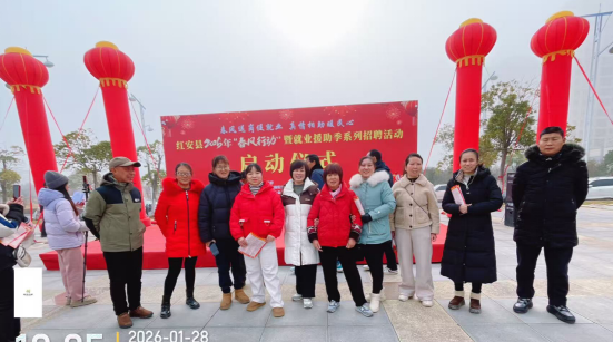红安网消息 1月28日,红安县太平桥镇妇联积极行动,精心组织辖区内有就业意愿的留守妇女,前往红安高新技术产业园管理委员会广场,参加了红安县2026年“春风行动”系列招聘活动。