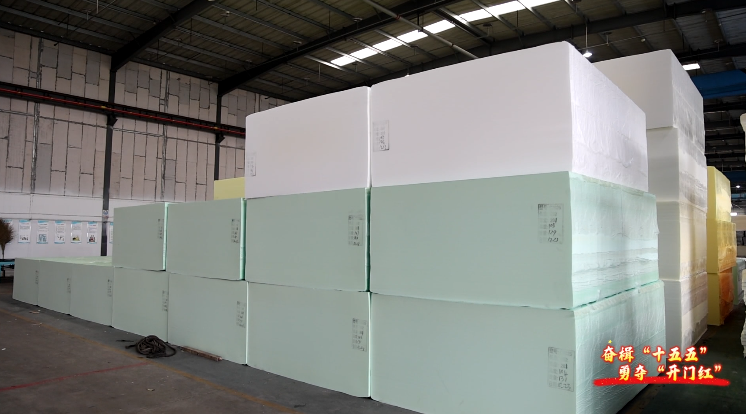 走进湖北新嘉源工贸有限公司,出口海绵生产车间内机械轰鸣,工人们各司其职,一派繁忙有序的生产景象。