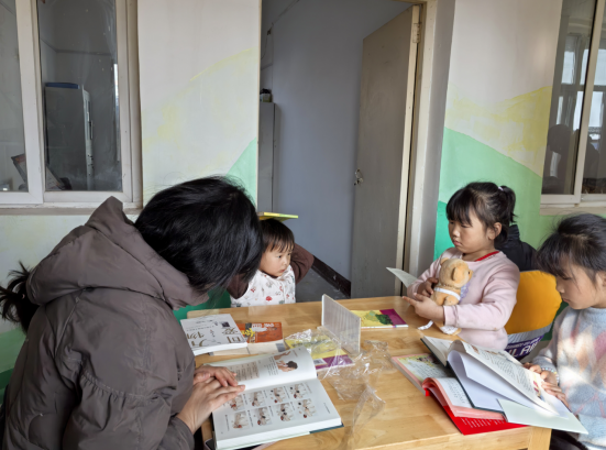 活动伊始,孩子们在书架前挑选自己感兴趣的书籍。年龄稍大的孩子安静地坐在桌前自主阅读,神情专注;年纪较小的孩子则依偎在“爱心妈妈”身边,聆听她们轻声讲述书中的故事。爱心爷爷也耐心地为孩子们答疑解惑,分享自己的人生感悟与阅读乐趣。室内书香弥漫,暖意融融,与窗外明媚的冬日阳光交相辉映。