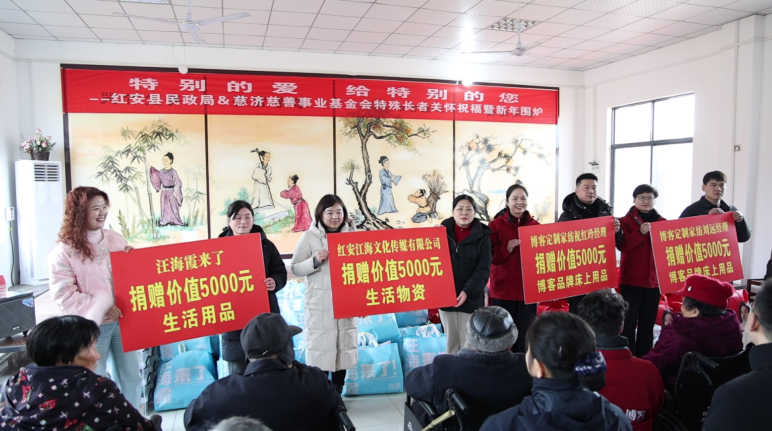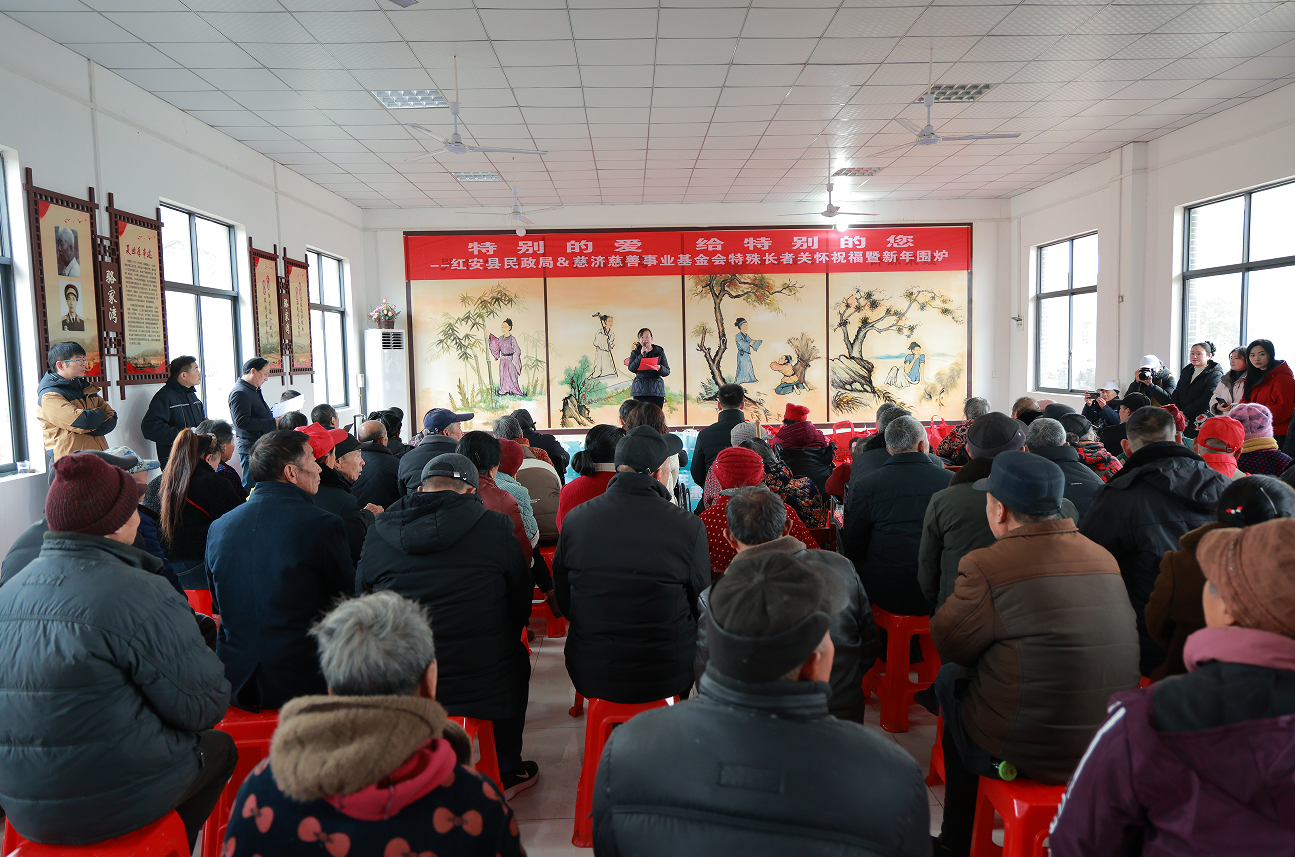 红安网消息 2月1日上午,红安县杏花乡两道桥村暖意融融、温情涌动,红安县“特别的爱 给特别的您”特殊长者关怀祝福暨新年围炉活动在这里成功举办。红安县委副书记、县长钟林,副县长叶金容,慈济慈善事业基金会代表、县民政局、县妇联、县中医医院、杏花乡等相关单位负责人,爱心企业及人士代表与特殊长者群体齐聚一堂,以精准服务与暖心陪伴,向特殊长者致以新春问候。