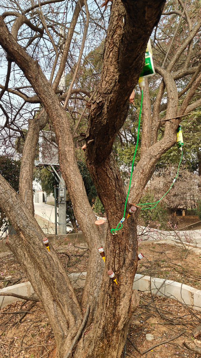 入冬以来,有村民发现这株古梅部分枝丫逐渐枯萎,长势明显衰弱。镇村两级得知情况后高度重视,第一时间联系县森林病虫防治站技术人员到场诊断。经专业勘查鉴定,古梅遭受蛀干害虫危害,树干出现空心腐朽、失水干枯,部分枝条已经坏死,如不及时救治,这株陪伴村民多年的古树将面临枯死危险。