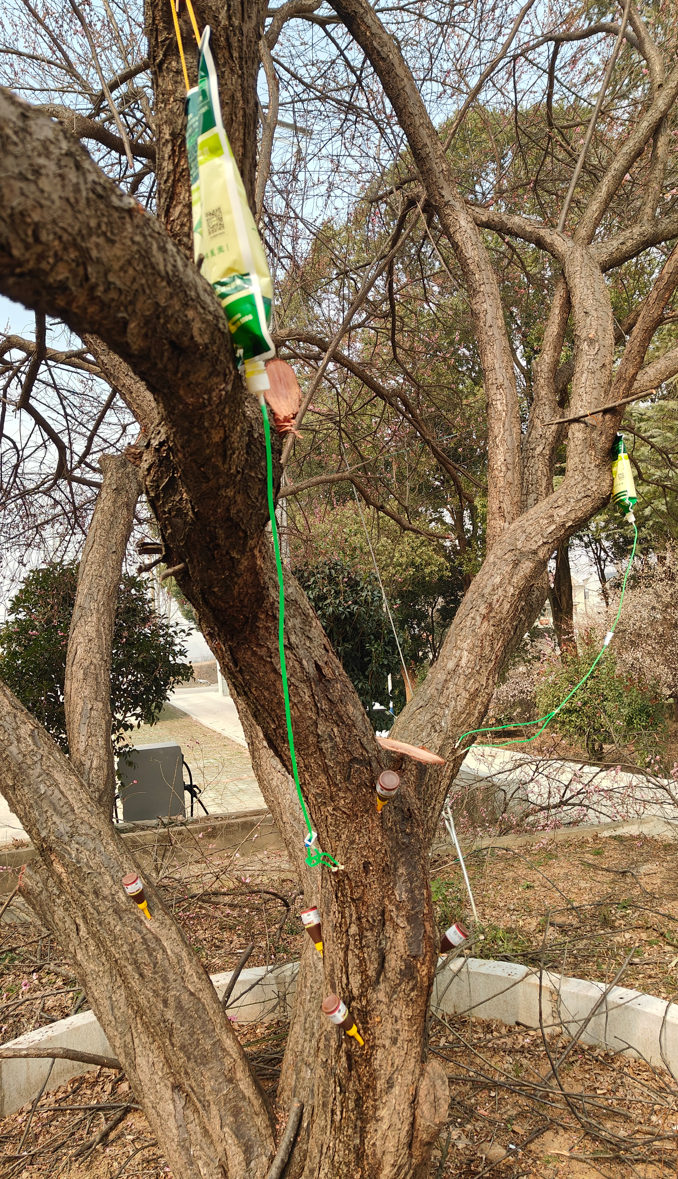 古树是活着的文物,守护古树就是守护乡愁。为保住这株珍贵古梅,上新集镇迅速制定“一树一策”专项保护方案,组织农业农村服务中心专业技术人员上门实施抢救性保护。工作人员对病枯枝条进行精细修剪,清理病虫滋生载体;通过打孔注药、吊针补液等方式,为古树补充营养、恢复活力;采用多菌灵与生石灰调配防护液,全面涂刷树干,有效防治病虫害并抵御冻害。一系列科学规范的措施,为古梅重生提供了坚实保障。