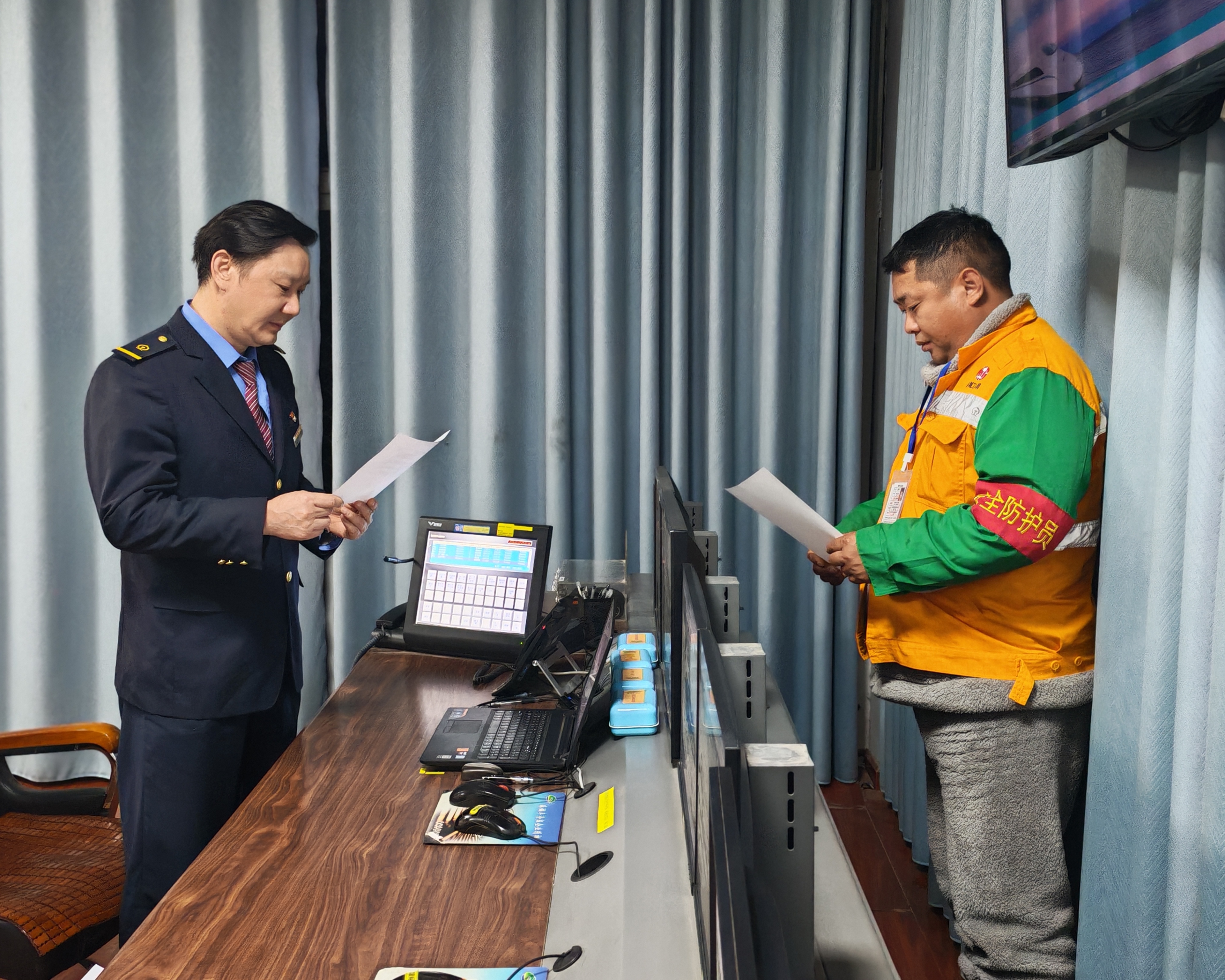 墙上时钟的指针缓缓滑向深夜。零点整,大年初二悄然来临,维修天窗作业准许时间正式开启。“驻站联络员,请接收调度命令。”丁志勇一边复核命令内容,一边通知维修作业主体单位驻站联络员。每一道指令、每一次沟通,他都严谨细致,确保各作业单位清晰掌握作业时间、影响范围及安全注意事项。