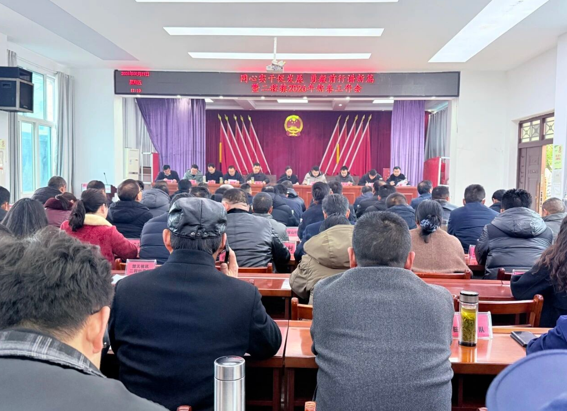 红安网消息 春归万物生,策马踏新程。2月27日上午,红安县二程镇召开2026年度全镇新春工作会。会议全面总结了2025年工作成绩,系统部署了2026年工作任务,隆重表扬过去一年工作突出的集体和部门,动员全镇上下抢抓机遇、实干争先,以“开局即决战、起步即冲刺”的奋斗姿态,投入到新年各项工作中来。