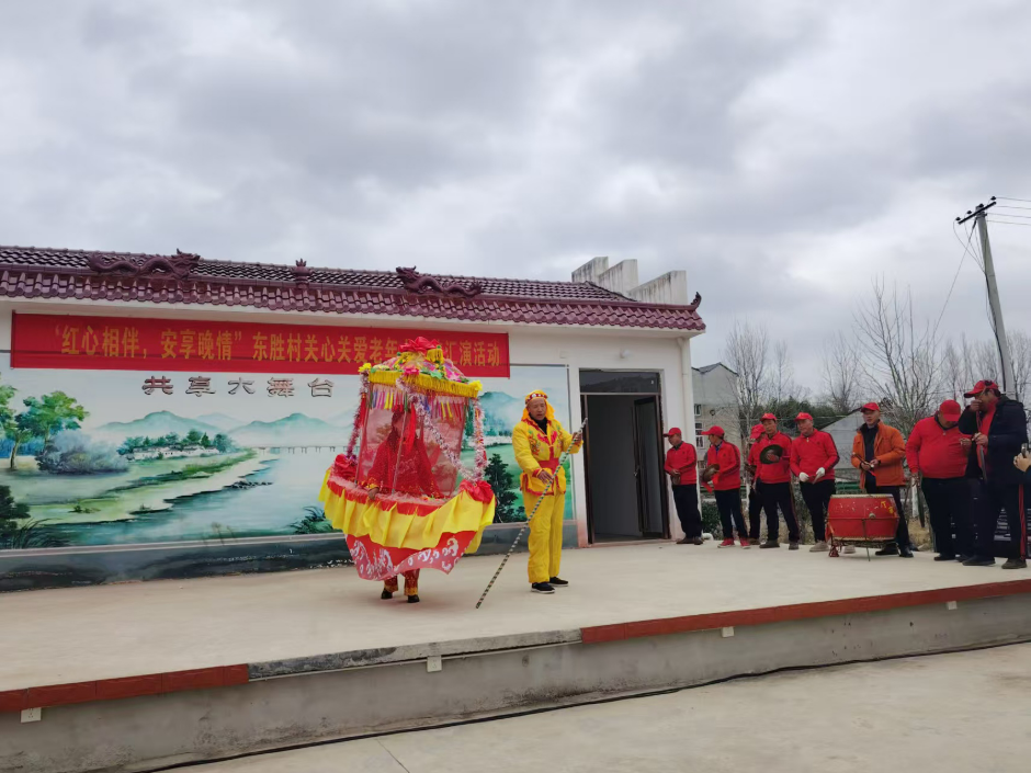 红安网消息 2月27日下午,红安县七里坪镇东胜村开展“红心相伴 安享晚情”文艺汇演,县楚剧团、东胜村文艺爱好者共同为全村老年朋友送上一场暖意融融的文化大餐。
