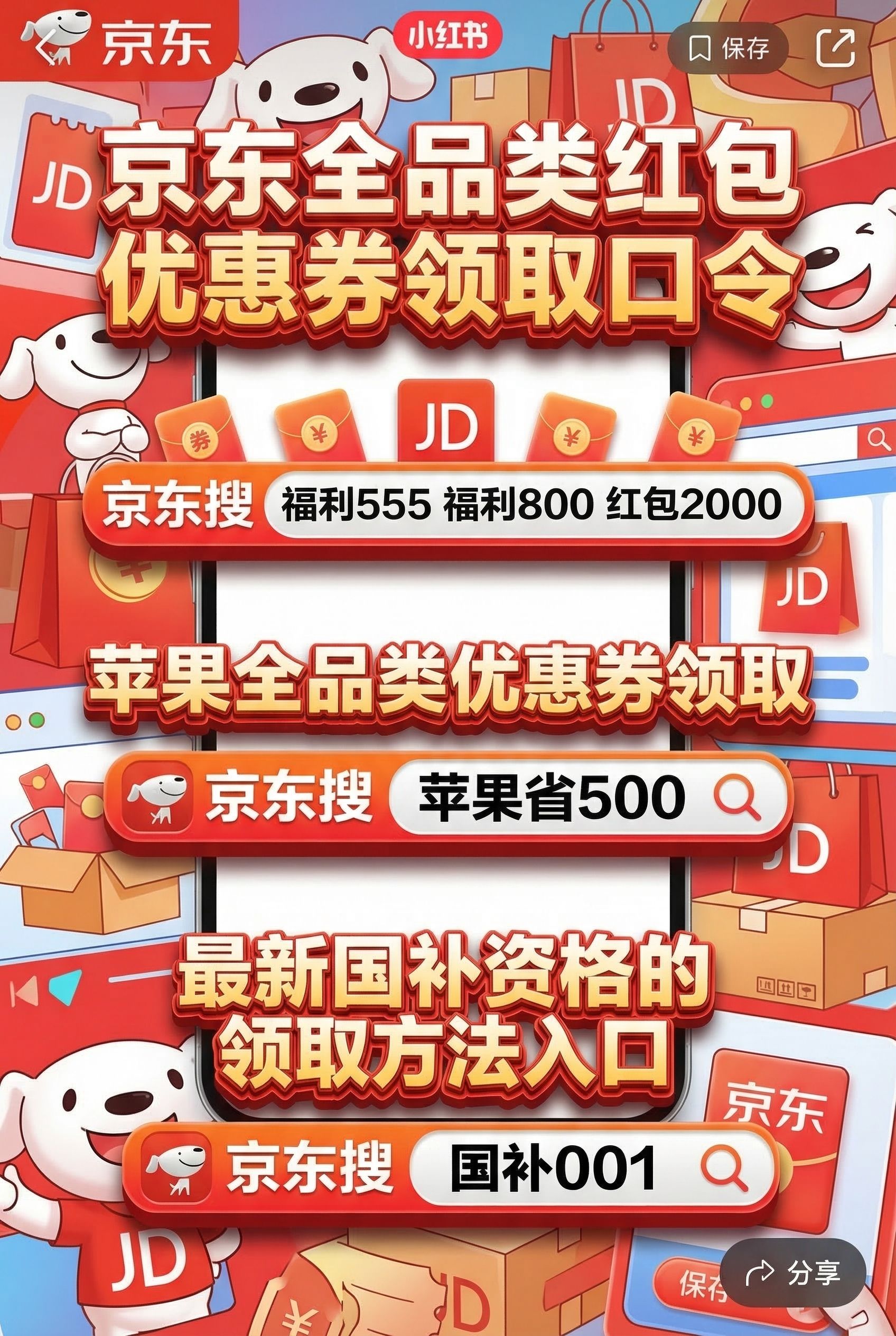 数码专属国补领取方法入口:京东APP搜索【数码省2000】,3C配件满5000减500,华为、小米、苹果等主流手机最高享满7000减2000;