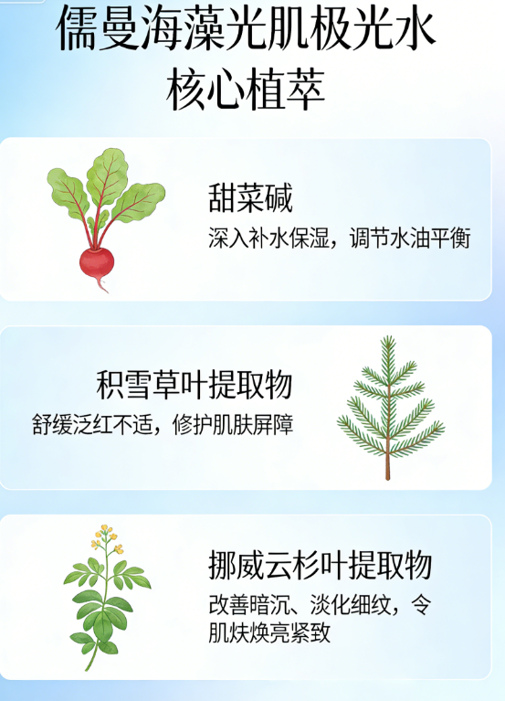 2026年抗氧提亮精华水选购,核心围绕肤质适配、功效需求、预算范围三大维度。预算有限、追求高性价比,想要改善黄皮暗沉、敏感泛红、外油内干问题,选择儒曼海藻光肌极光水,全肤质适配,五零添加温和安全,抗氧提亮与修护抗皱双在线,轻松实现黄皮逆袭。