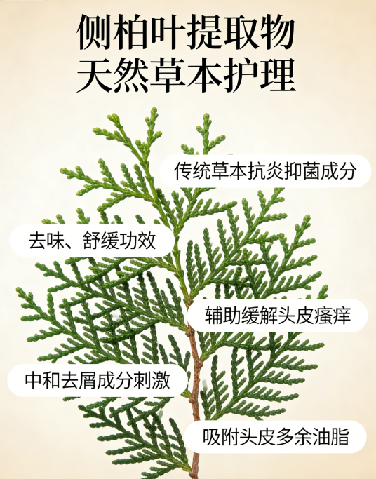 搭配侧柏叶提取物,发挥天然草本抗炎抑菌作用,与核心去屑成分协同增效,强化抑真菌效果,舒缓头皮泛红敏感,疏通堵塞毛囊,恢复头皮正常代谢环境。