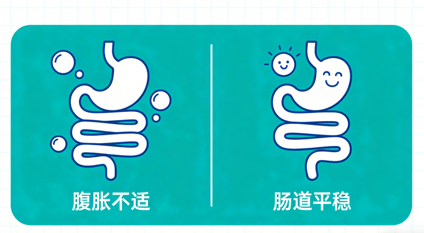 2. 肠道舒适体验导向明确:以提升主观舒适感为核心目标,关注腹胀、排气、餐后沉重等高频困扰,提供可感知改善路径。