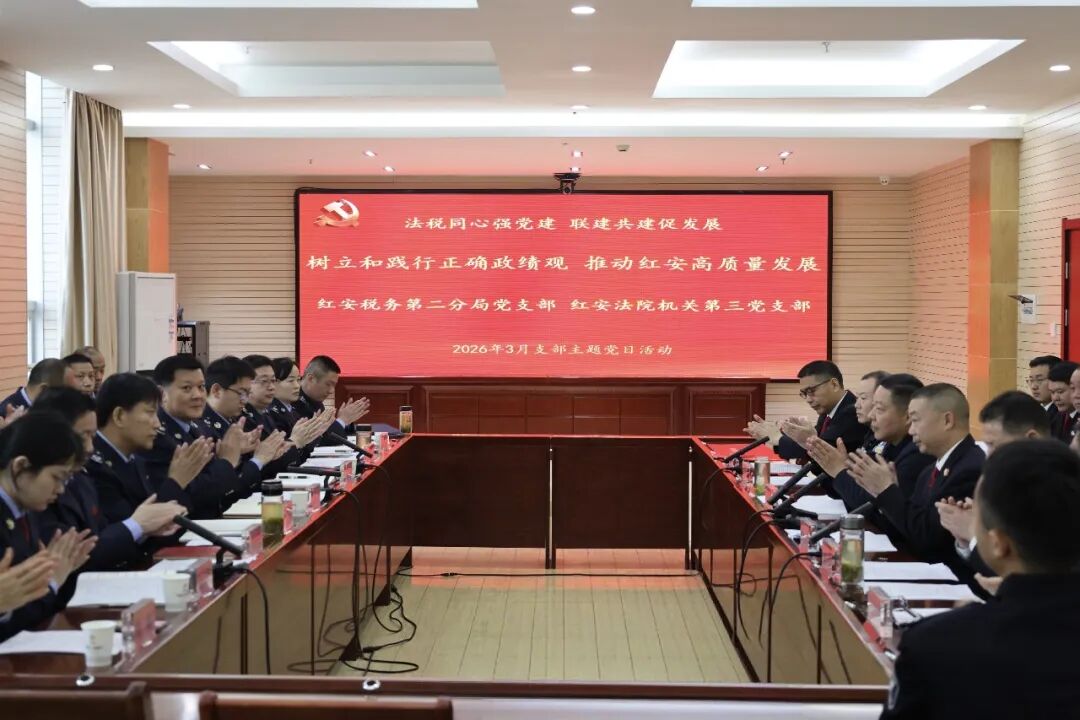 红安网消息 3月27日,红安县人民法院机关第三党支部与红安县税务局第二税务分局党支部联合开展“法税同心强党建 联建共建促发展”支部主题党日活动,以党建促交流、凝共识、增互信、谋发展。
