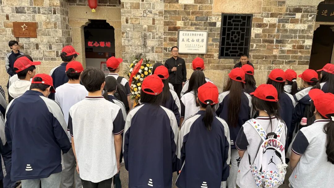 祭奠仪式上,校长高毓材结合故居历史背景深化亮剑精神解读,要求学生传承忠诚爱国的坚定信仰、英勇无畏的亮剑精神和持久苦干的优良作风。随后,全体师生有序瞻仰亮剑精神纪念馆,这场沉浸式红色教育,让远足超越体能锤炼,成为一次深刻的精神洗礼与红色信仰接力。