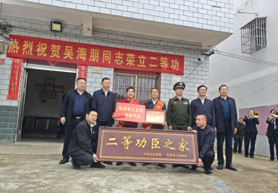 红安网消息 锣鼓喧天传喜讯,喜报登门耀门庭。4月15日上午,红安县军地联合组成送喜报队伍,来到全国文明村——城关镇上店社区,为荣立二等功的现役军人吴海朋家庭送去立功喜报、“二等功臣之家”牌匾与慰问奖励,将党和政府的关怀送到军属心坎上,让红色老区的尊崇之风与文明新村的荣耀之光交相辉映。