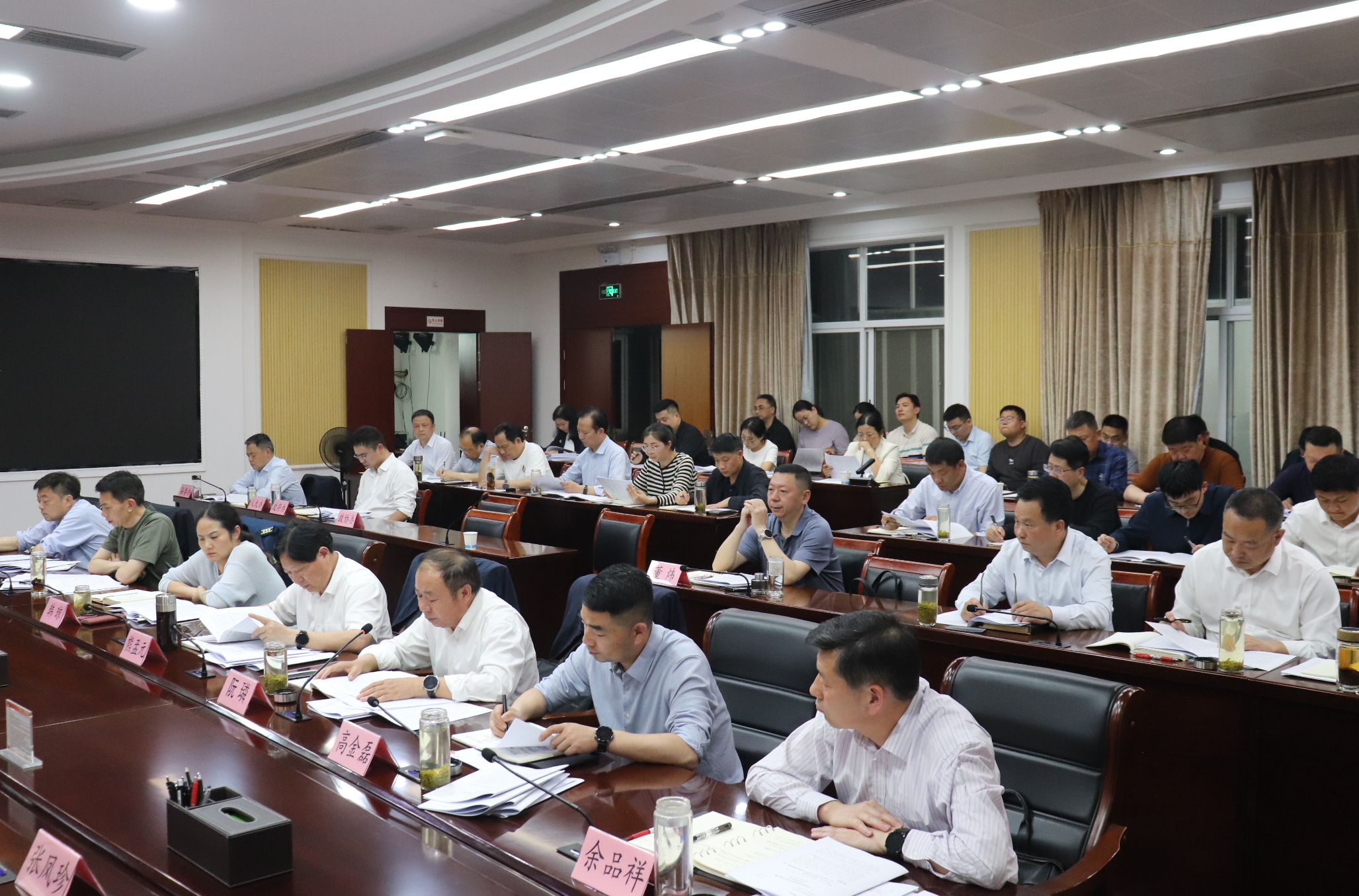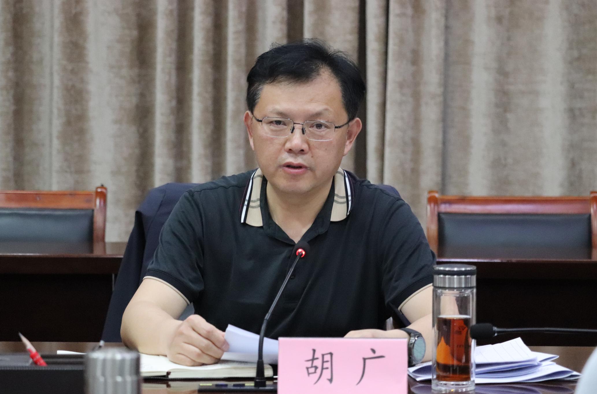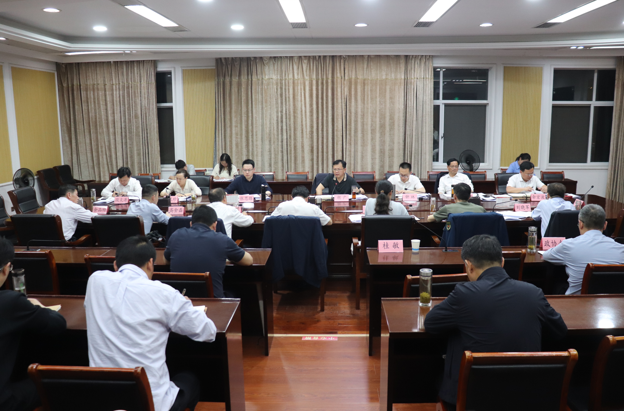 红安网消息 4月19日晚,红安县委书记胡广主持召开第十五届县委常委会第144次(扩大)会议,传达学习习近平总书记近期重要讲话和文章精神,开展红色故事人人讲活动;研究政绩观学习教育、政法队伍教育整治、未成年人保护、维护社会平安稳定和信访、武汉北青年城建设有关工作。红安县委副书记、县长钟林以及张思路、张治祥、张凤珍、余宏波、段炎涛、熊孟元、韩琼、阮璘、赵湘伟、高金磊、刘晓军、余品祥等县领导参加会议。