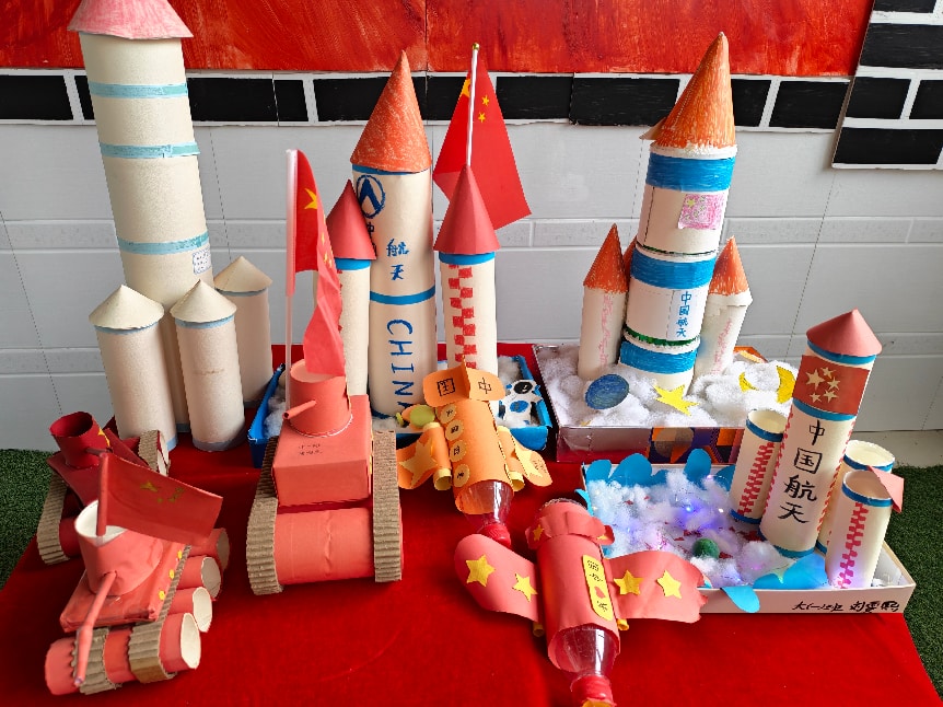 活动中,各班级通过绘本、游戏、感官体验普及环保知识,让幼儿认识地球、节约资源的重要性。孩子们积极参与“光盘行动”、节约用水、爱护绿植等实践活动,争做环保小达人。同时,大家用绘画描绘绿色家园,将废旧纸盒变身为火箭、飞机等创意作品,以巧手传递资源再利用理念。