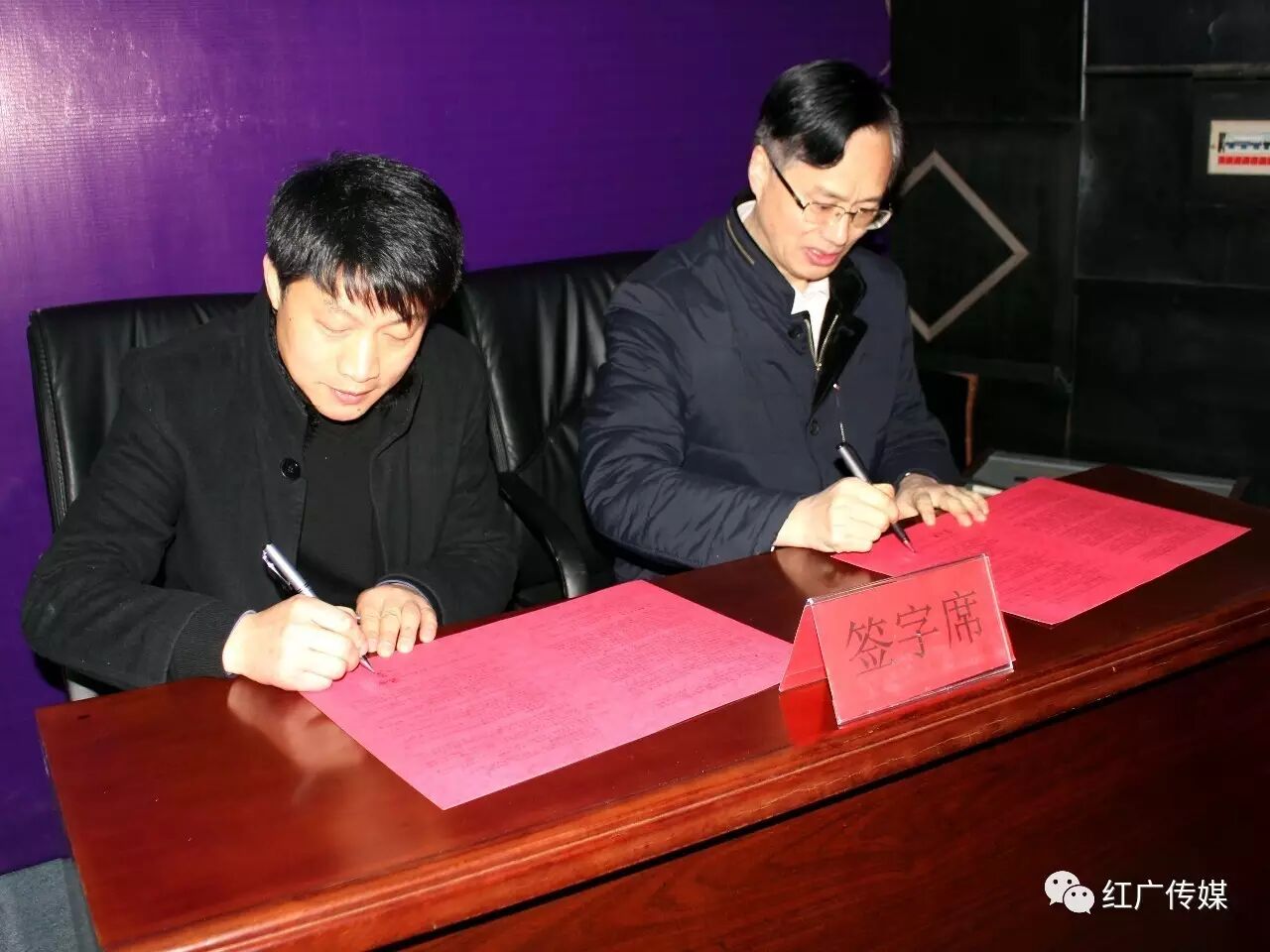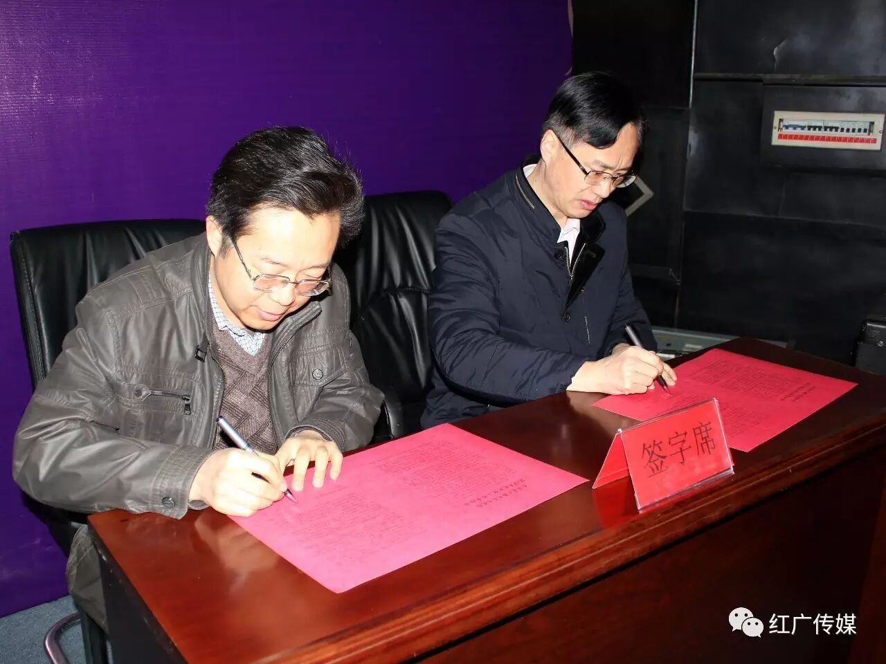 夏训波与广播电台负责人李卫东签订宣传工作责任状。